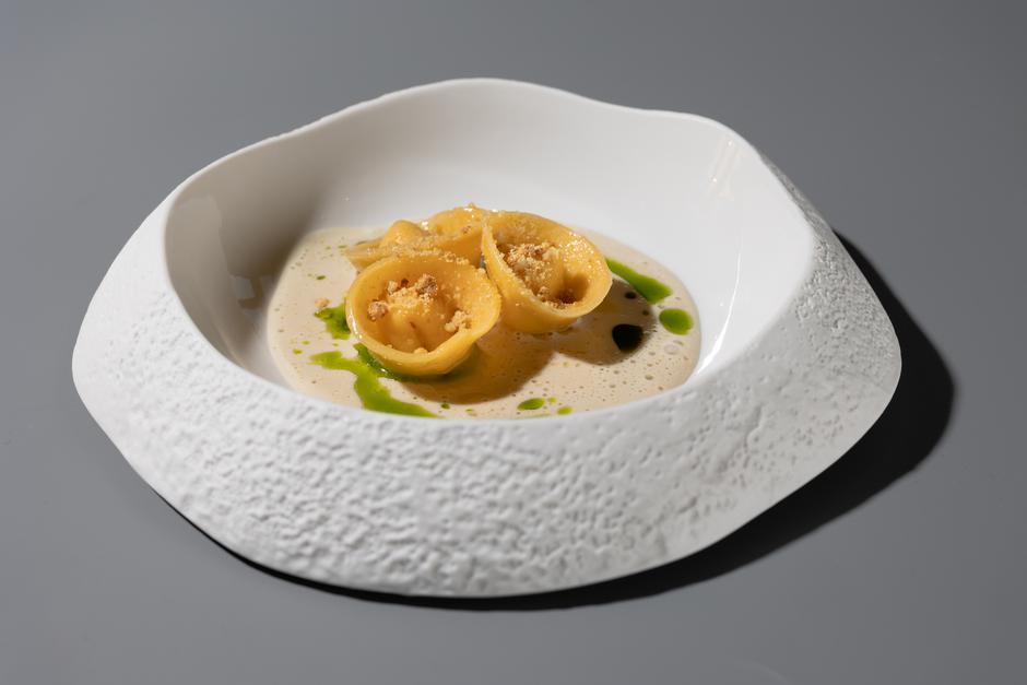 – Da! Sjeo sam u auto, to mi nitko ne vjeruje, i došao u Parmu a da nisam pojma imao što ću raditi. To jelo nikad nisam radio! Dočekala me tamo pasta – punozrnati fusilli. I to je to. Nisam mogao birati, drugi su već izabrali tko će s kojom pastom raditi, a meni su ostali ti fusilli. Ponio sam sa sobom bocu bučina ulja iz jednog sela u blizini Velikog Mrašova tu kraj Krškog i jedan lokalni mladi kozji sir. Imao sam i cvjetove buče. Napravio sam snack, fusille s kozjim sirom i prahom od bučina ulja. Izgledalo je kao da snijeg pada po njima. Pa ipak sam iz Slovenije, zemlje skijaša! U žiriju su bili vlasnik Paulo Barilla, filmska glumica Vittoria Belvedere, šef talijanske kuharske reprezentacije Daniele Caldarulo, kritičar Andrea Grignaffini... Ušao sam u polufinale, a u finalu pobijedio Japanca koji je radio sa sirovom ribom i kavijarom, Španjolca koji je radio nešto s graškom... I na kraju, dali su mi glinenu ploču da stavim u nju otiske svojih ruku. Eto i danas to stoji u Akademiji Barilla na zidu. Otisci prsta u Barilli kao na policiji – smije se Tomič.