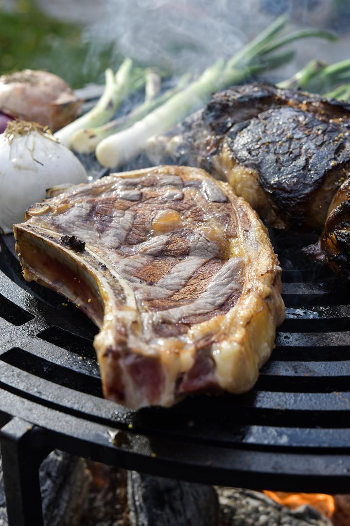 Za pripremu steaka na roštilju bit će vam potrebna vrlo jaka vatra da bi se na površini napravila korica kakvu trebate da bi se u mesu sačuvalo sve ono zbog čega obožavamo steakove – onaj smokey taste, bez kojeg nema priče o steakovima. Steak se peče medium rare, budući da se radi o odležanom mesu jer važno je u njemu zadržati sve sokove koji ga hrane. Za jedan tomahawk težine nešto više od 1 kg trebat će vam otprilike 20 minuta za pripremu, a nakon pečenja mora toliko i odmarati. Dok je meso na vatri, okrećite ga svake 3-4 minute i ne zaboravite zatvoriti bočne stranice steaka.