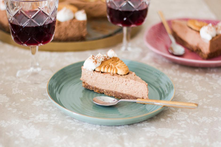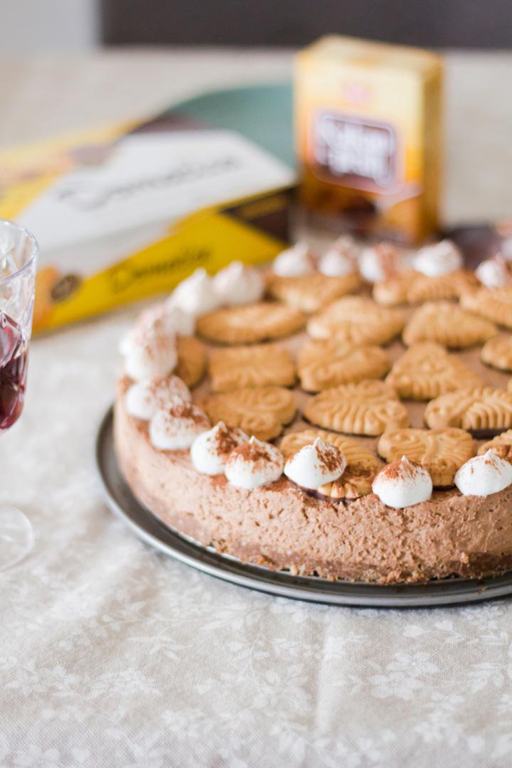 Kekse Domaćica sameljite u multipraktiku, pomiješajte s otopljenim maslacem i utisnite u okrugli kalup s pomičnim obručem promjera 26 cm. Ostavite u hladnjaku dok pripremate kremu.
