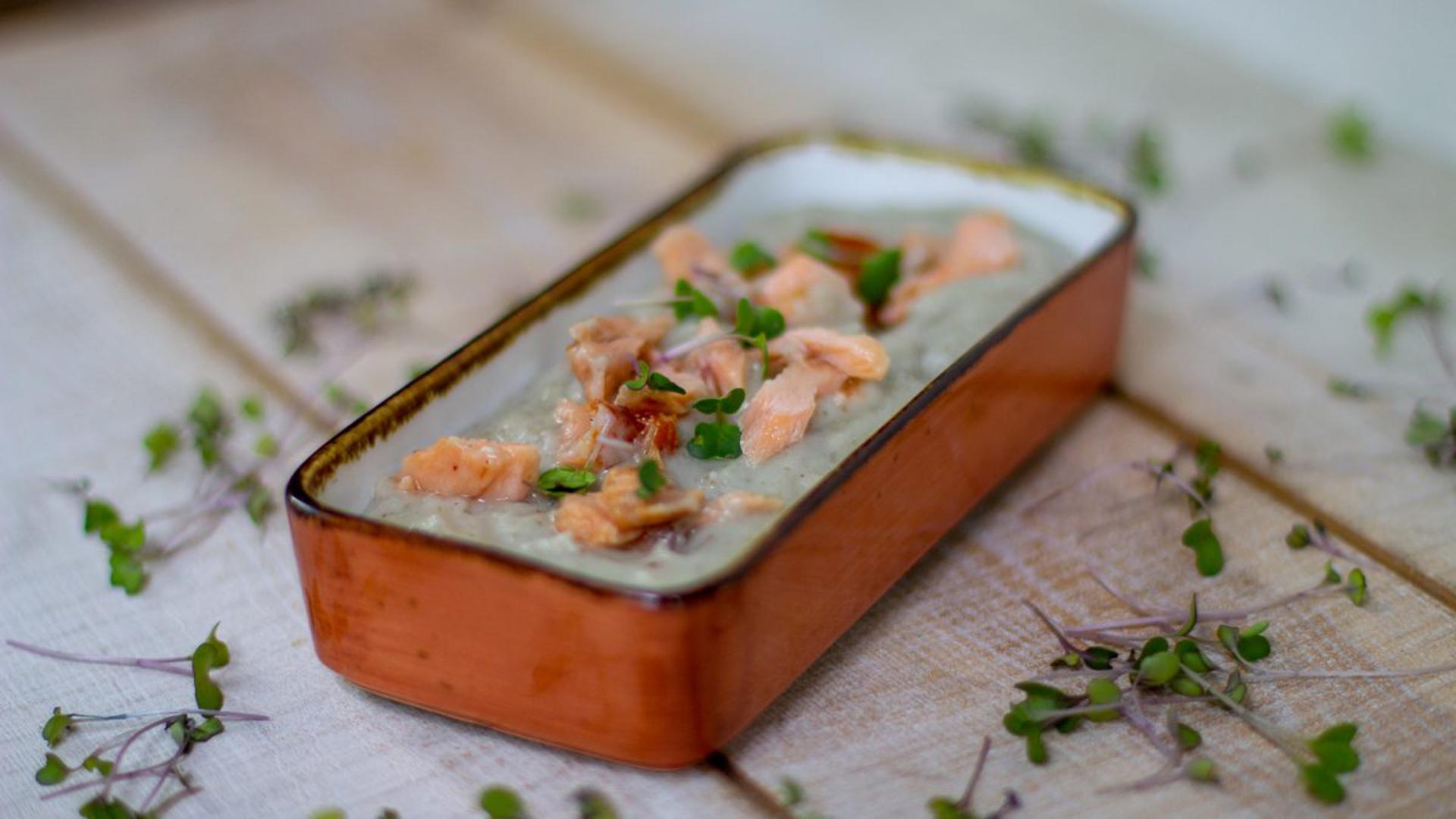 Čičoke dobro operite (po potrebi izribajte) ili ogulite (pilerom) i kuhajte u vodi 15-20 minuta. Kuhane čičoke prebacite u blender i dodajte sol, papar i žlica kokosova vrhnja pa sve dobro miksajte u blenderu. Ukoliko nemate blender možete upotrebiti i štapni mikser. Pire prebacite u vatrostalnu posudu, a preko njega natrgajte komade dimljenog lososa i sve zapecite u pećnici oko desetak minuta na 200 ºC.