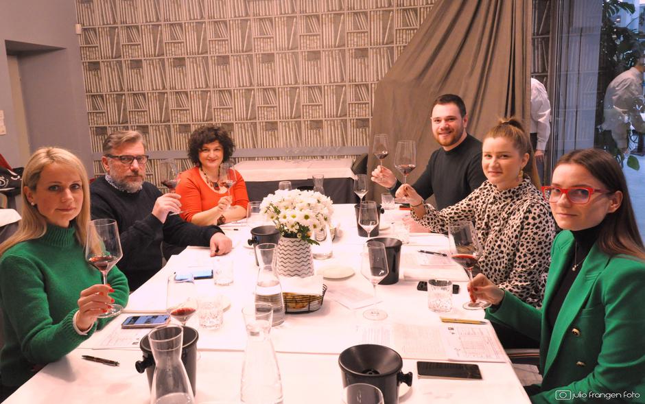 Tako je u zagrebačkom restoranu Vinodol zasjedala komisija od šest članova (većinom mladih, ali stručnih): dvije studentice 5. god. Vinarstvo i vinogradarstva Agronomskog Fakulteta u Zagrebu (pred diplomu) - Tina Lovin Mrak (nedavno došla s američke stipendije u vinariji Grgich Hills) i Andrijana Oreški, poznati gastro bloger Hungry Mile (Mile Butorac) te Andrea Pančur (certifikat HSK 1), Saša Zec, enolog i Marija Vukelić, voditeljica projekta i predsjednica komisije. Vina je posluživao iskusni Vinodolov konobar i sommelier Damir Tomić. Tema ocjenjivanja su bila „ljubavna vina“, vina koja bismo rado pili uz svečanu večeru na Valentinovo. U nekim su vinima tražena i afrodizijačka svojstva (jači alkoholi, punoća, zavodljivost). Nakon ovog zanimljivog ocjenjivanja, restoran Vinodol počastio je članove komisije ukusnim ručkom – posebnom osmišljenim jelovnikom za Valentinovo koji od srca preporučujemo: predjelo je cikla s kremom od kozjeg sira, tostiranim orahom i crnim tartufom; glavno jelo su ravioli nadjeveni vrganjima s raguom od patke i kremom od pečenih krušaka, a desert - choux od vanilije sa čokoladom od jagode.