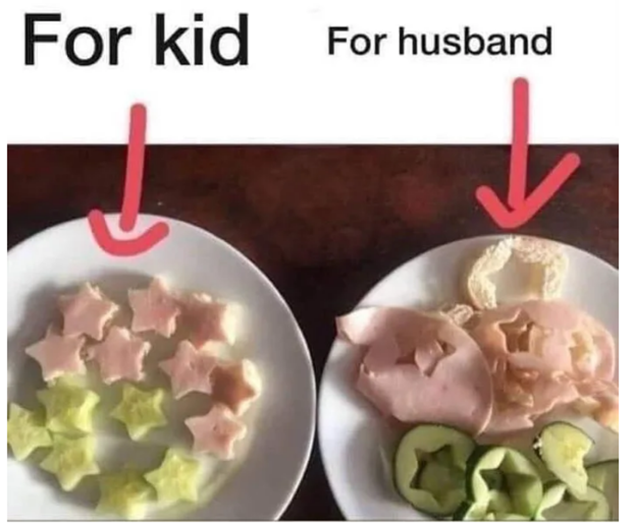 Njezina djeca tako su dobila lijepo oblikovane male sendviče u obliku zvjezdica, zajedno s krastavcem istog oblika, dok je tata dobio izrezane ostatke. Fotografijom se pohvalila na internetu, a komentari su raznoliki.