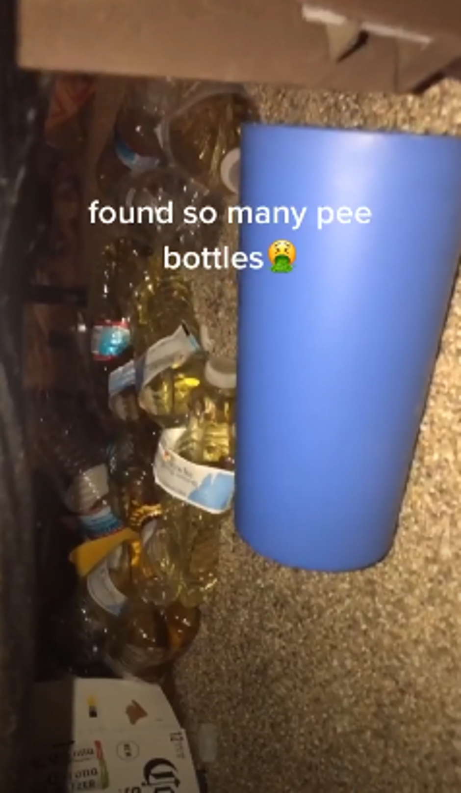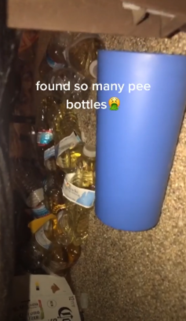 Colleen je pokazala kako je posvuda smeće, na podu je hrpa odjeće i posteljine, a jedan detalj zgrozio je ljude. Ispod kreveta i u kutovima sobe pronašla je puno boca - s mokraćom!