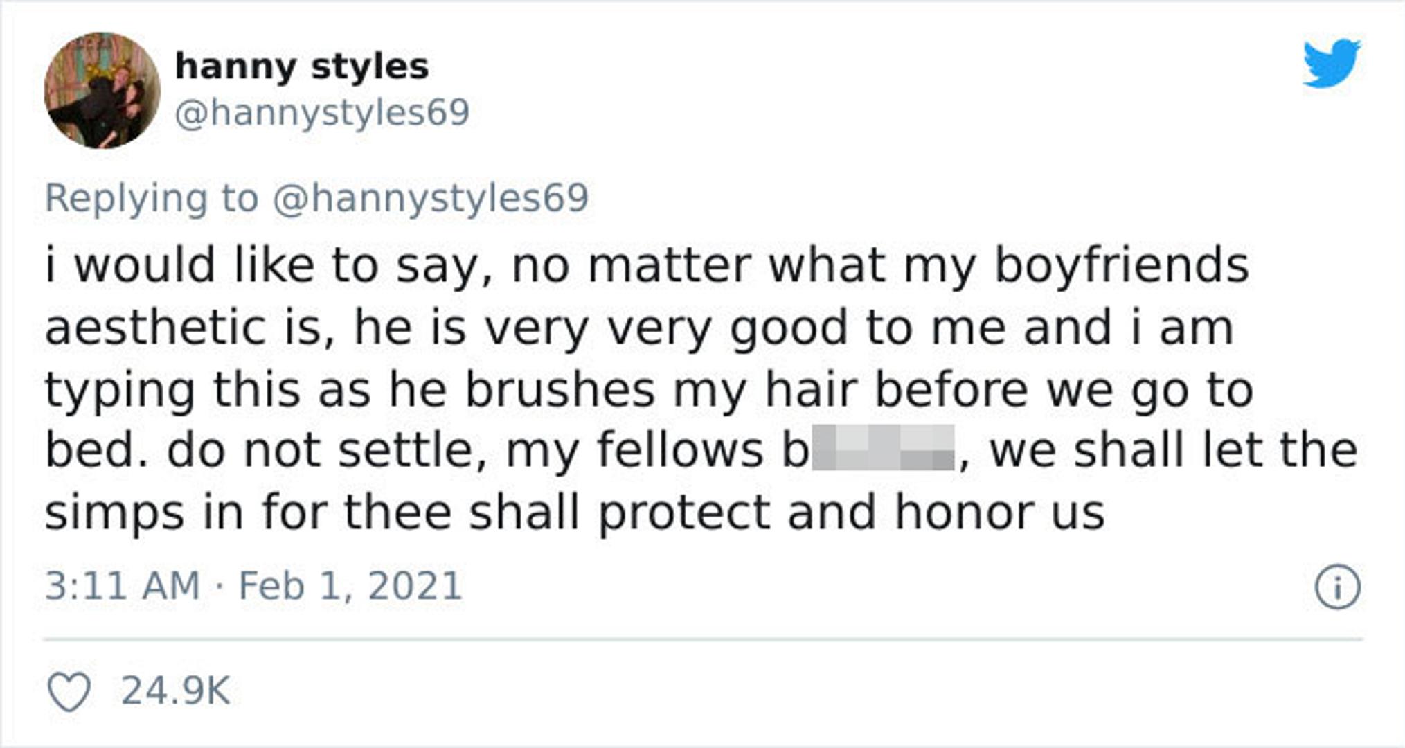 Nije trebala ništa napisati u opis jer sama fotografija govori više od tisuću riječi, pa je objava brzo postala viralna, ali Hanny je osjećala potrebu da obrani svog partnera kako ljudi ne bi mislili da je neuredan. U idućoj objavi napisala je kako nije bitno njegovo uređenje sobe jer je jako dobar prema njoj. "Dok ja ovo pišem, on mi češlja kosu prije spavanja. Nemoje pristati na manje od toga djevojke."