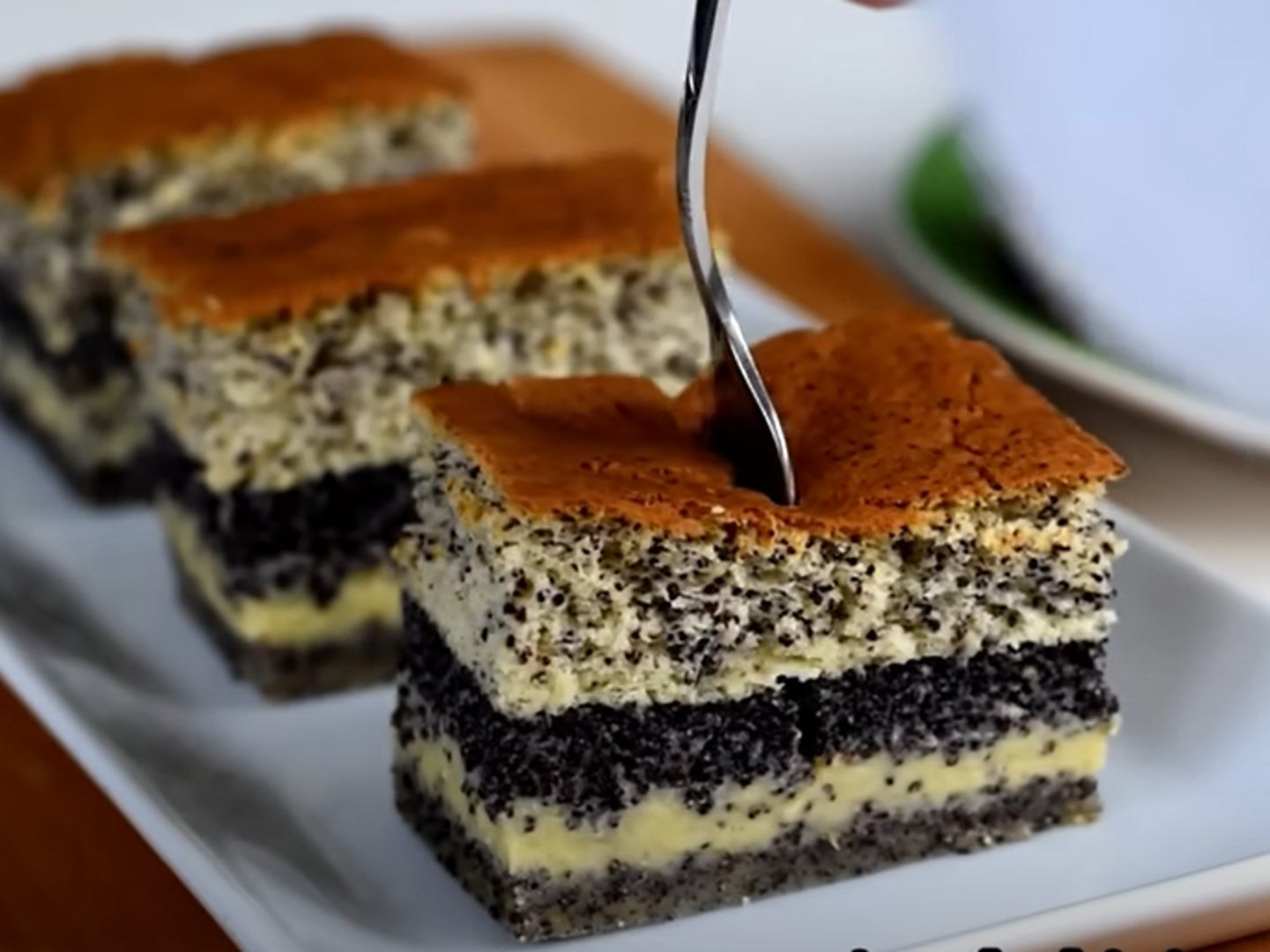 I čarobni kolač recept iz jedne smjese 5 slojeva ili pet redova od maka je gotov i spreman za posluživanje