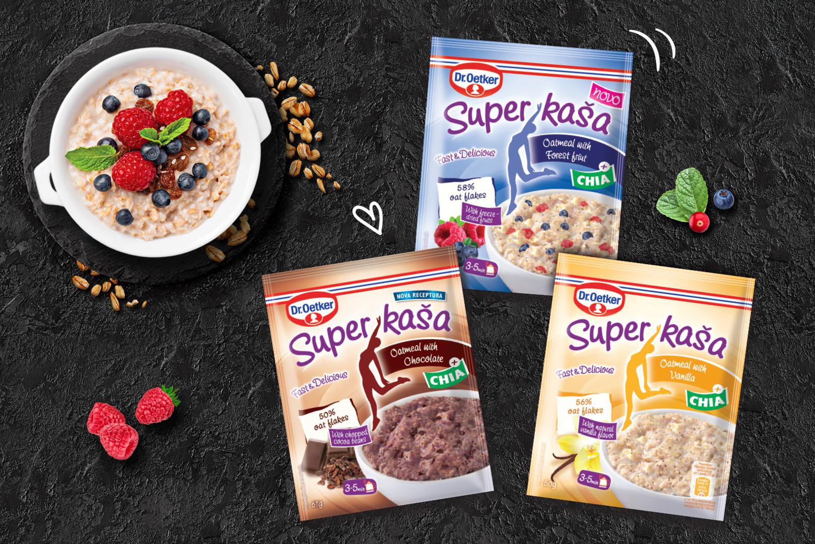 Kako osjećaju sitosti najviše pridonose složeni ugljikohidrati porijeklom iz žitarica, prehrambena vlakna i mliječni proizvodi bogati bjelančevinama, Dr. Oetker Super kaše i Vitalis žitarice odabir su svih roditelja koji žele sebi i svojoj djeci pružiti hranjiv i ukusan doručak.