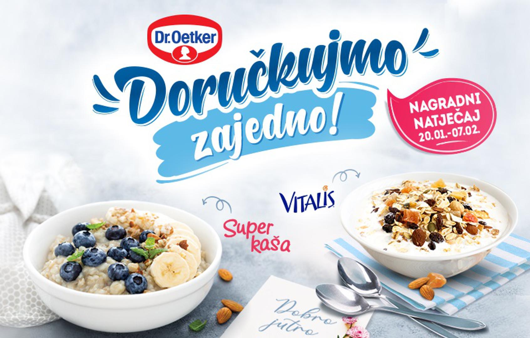 Dr. Oetker svojim brojnim ukusnim i hranjivim proizvodima kontinuirano podsjeća na važnost zdravih i cjelovitih namirnica za doručak. Kako bi dodatno naglasili da je upravo kvalitetan jutarnji obrok nužan za dobro funkcioniranje organizma čitav dan, iz Dr. Oetkera predstavljaju novu kampanju pod nazivom Doručkujmo zajedno, a u kojoj ističu svoje Vitalis i Super kaša proizvode kao idealne hranjive doručke za cijelu obitelj.