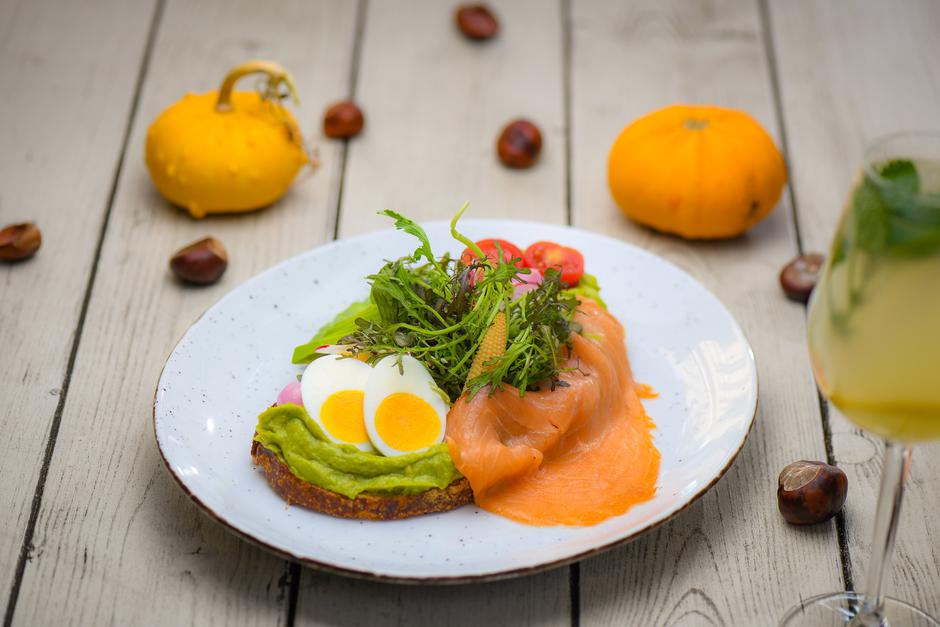 Očišćeni avokado izrežite na manje kocke te ga izmiksajte štapnim mikserom. U njega po želji dodajte maslinova ulja, soli, papra i limunova soka te cherry rajčice. Namažite na krišku tostiranog kruha uz krišku lososa ili prepržene šunku i tvrdo kuhano jaje. Začinite po želji i poslužite uz sezonsku salatu.