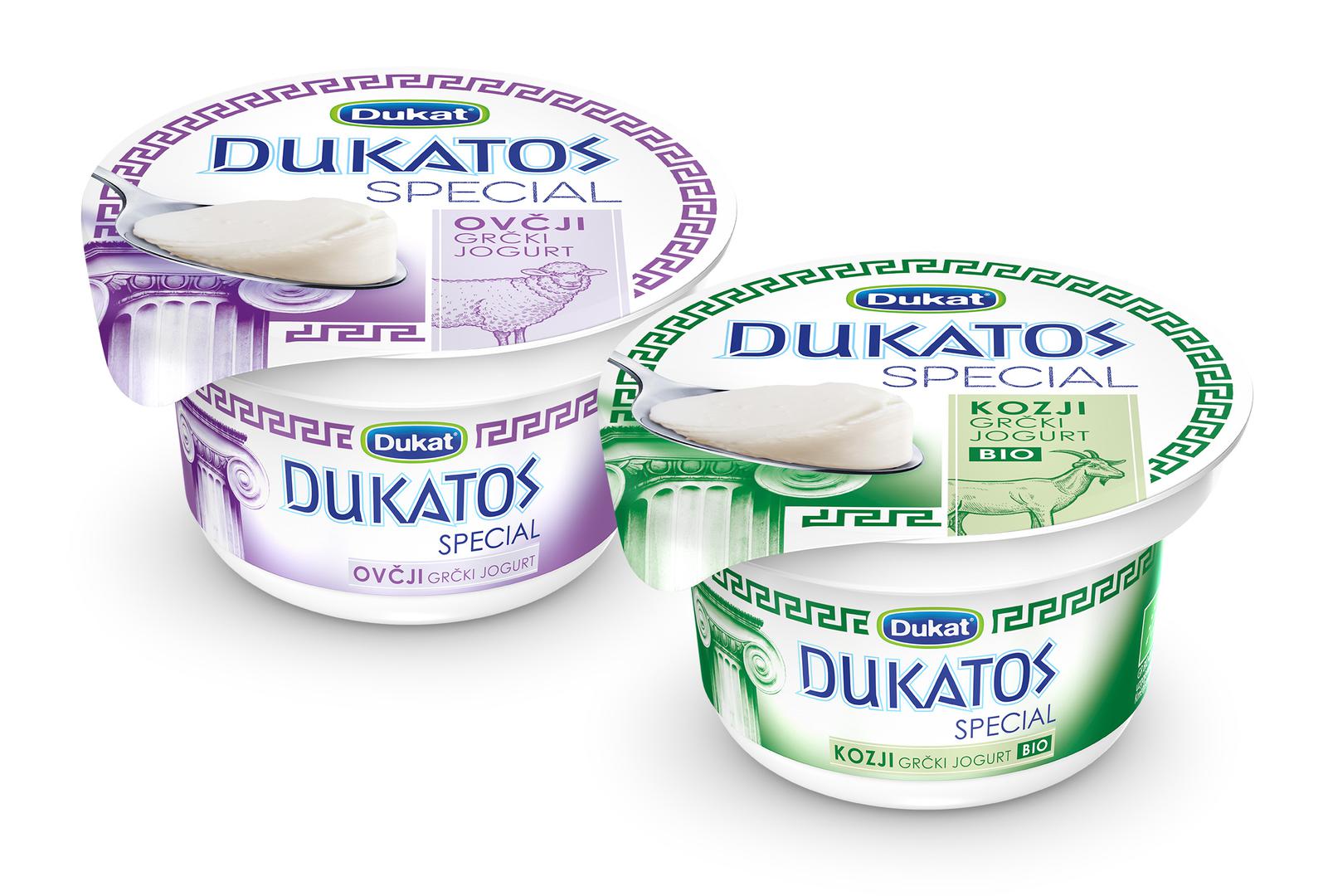 DUKATOS SPECIAL grčki ovčji i BIO kozji jogurt pakirani su u 150 gramskim čašicama prepoznatljivog dizajna, a preporučena im je cijena 7,99 kn.