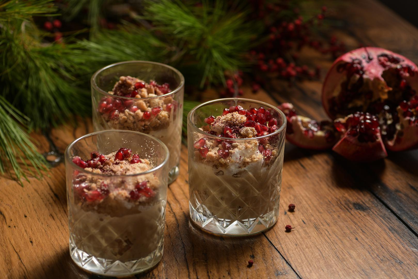 5 jaja, 5 žlica šećera, 1000 ml mlijeka, vanilin šećer, 15-20 komada petit beurre keksa, 20 likera od ruže, 100 g svježeg nara. Priprema: Žutanjke sa šećerom izmiksajte do guste smjese, mlijeko stavite u lonac s 2 žlice šećera u koje ste dodali vanilin šećer, liker od ruže, Pustite mlijeko za zavrije. Napravite snijeg od bjelanjaka, keks izlomite u kristalne čaše. Žlicom odvajate snijeg od bjelanjaka i nakratko stavljajte u uzavrelo mlijeko, kuglice od snijega nakon minute okrenite na drugu stranu dok ne povećaju volumen i odmah ih slažite na kekse. Smjesu žutanjaka i šećera dodajte u preostalo mlijeko neprestano miješajući dok se ne zgusne. Prelijte preko kuglica od snijega i stavite u hladnjak na 3 sata da se sve hladi. Na kraju pospite svježim narom i likerom od ruže za intenzivniji okus.