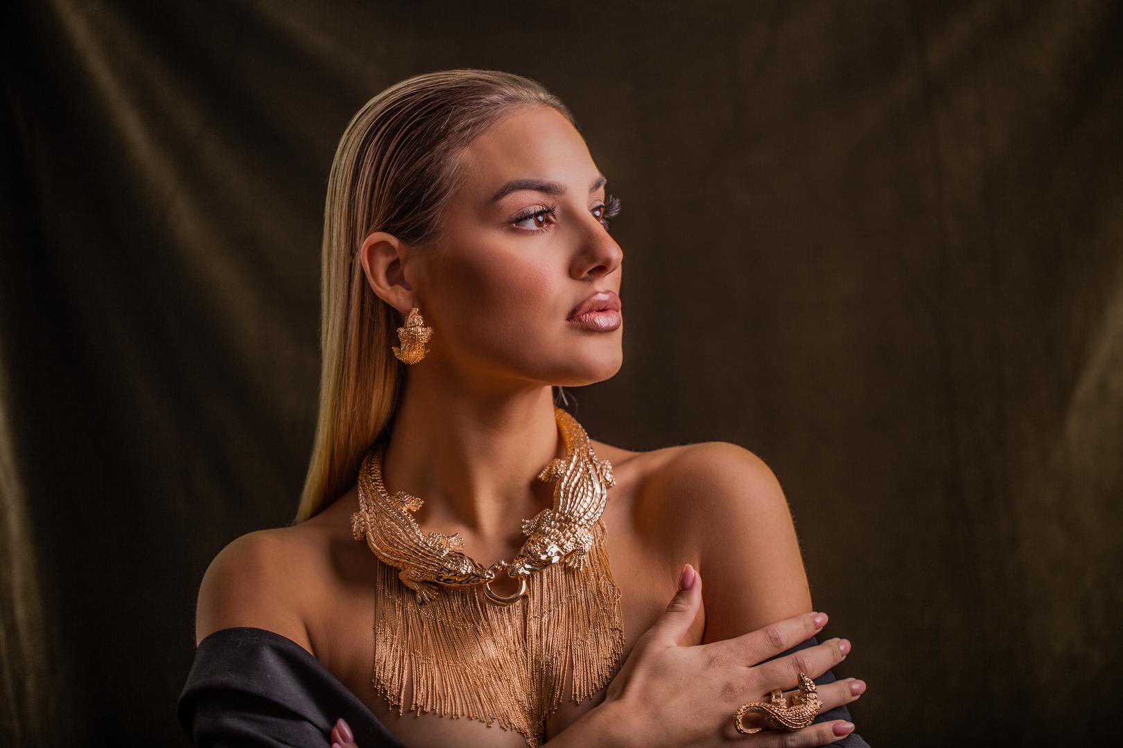 Ukorak sa svjetskim trendovima, zlatarska radionica luksuza zagrebačke obitelji Prahir predstavlja moćnu kombinaciju žutog zlata upotpunjenog motivom krokodila s kojom nećete proći neopaženo. Kolekciju, ručno izrađenu od 14 karatnog zlata, čine narukvica, naušnice, prsten te ogrlica.