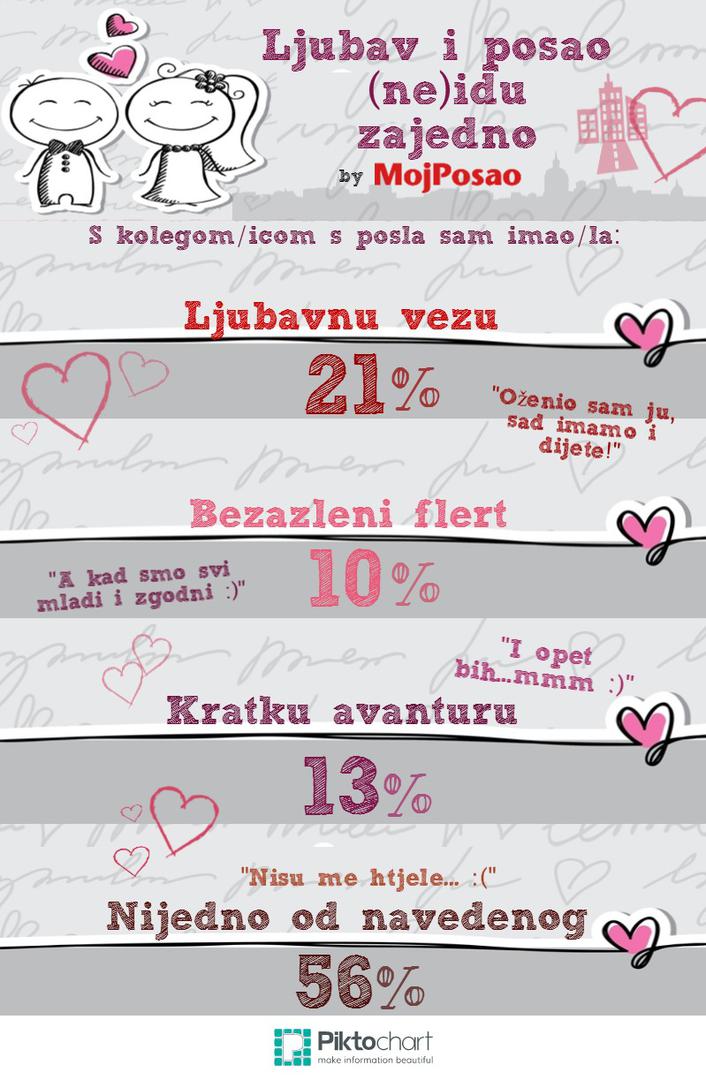 Ipak, postoje i oni koji nisu odoljeli ljubavi na poslu, pa tako 21% ispitanika kaže da su s kolegom ili kolegicom imali ljubavnu vezu.