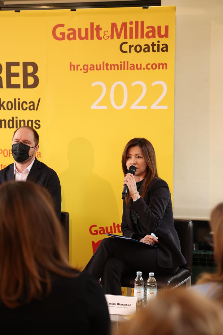 Predstavljanju je nazočila direktorica GM za Hrvatsku, gđa Ingrid Badurina Danielsson, koja je poručila: - Gastronomska scena Zagreba i okolice posebno se razvila posljednjih godina te je grad dobio mnoštvo novih restorana s bogatom i raznovrsnom ponudom. Zasigurno još neki od njih zaslužuju mjesto u vodiču, ali zbog ograničenog broja nisu mogli biti uvršteni u ovogodišnji izbor tiskanog izdanja. No, bit će predstavljeni na GM webu na kojemu je dostupan i sadržaj vodiča za cijelu Hrvatsku, a godišnje bilježi čak 2,5 milijuna korisnika i 6 milijuna pregleda. Tiskano izdanje Gault&Millau Croatia 2022 za cijelu Hrvatsku izlazi 5. travnja 2022.