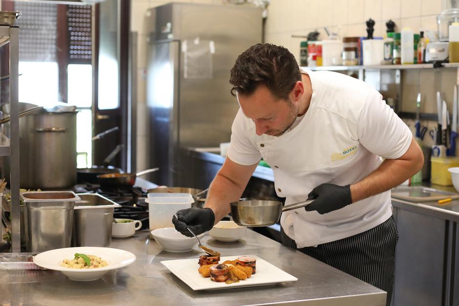 – Jedan me poznati domaći kuhar naučio kako pripremiti pire od celera da bude kremast i da zadrži sve svoje sokove i vitamine. Pečem ga zamotanog u aluminijsku foliju, tako se dobije odličan okus kojim su gosti jako zadovoljni. Imali smo na meniju i ciklu pripremljenu na taj način, gosti su i taj pire hvalili. Inače, jelovnik usklađujemo i s godišnjim dobima, tako zimi imamo sarme, buncek i zelje... – kaže kuhar i drugi suvlasnik, Ivanov brat Marko Lončar. On i Milan Mihić majstori su u kuhinji, osmišljavaju menije, a bratići Marko i Mario, osim što se bave se nabavom i prodajom, znaju kada je velika gužva i sami konobariti te posluživati. Kažu da im nije teško raditi bilo što u restoranu i hotelu, jer su u prvom redu ugostitelji, a onda i investitori. Ova je sezona, kažu, počela jako dobro, bolje od očekivanog svima u tom kraju, pa je posla jako puno.