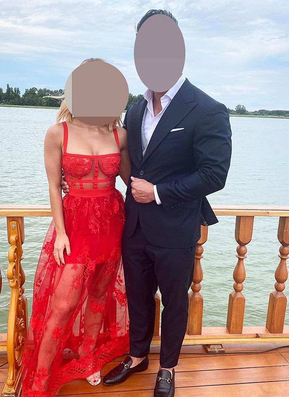 Fotografija prikazuje muškarca u plavom odijelu, ali svu pažnju privukla je njegova partnerica u crvenoj prozirnoj haljini. Iako su izgledali fantastično, mnogi smatraju da njezina haljina nije primjerena za vjenčanje.