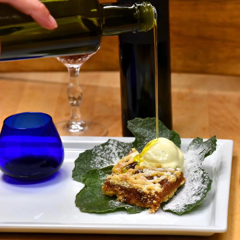 Peti slijed bio je desert – krostata od smokve sa sladoledom od vanilije i s nekoliko kapi aromatiziranog maslinovog ulja s limunom uz Prošek vinarije Duboković izmamio je uzdahe i profesionalcima potvrdivši idealnu “sommeliersku” kombinaciju. Ulje je dobiveno istodobnim hladnim prešanjem plodova maslina i limuna, izrazito je osvježavajuće, okusi i mirisi se savršeno nadopunjuju. Prošek je tradicionalno desertno vino Dalmacije, radi se od prosušenoga grožđa zadržavajući tako šećere, tj. slatkoću... Prošek Don Petar radi se od autohtonog hvarskog plavca malog, odležava u korištenoj drvenoj bačvi, opojan je, gust i nije presladak.