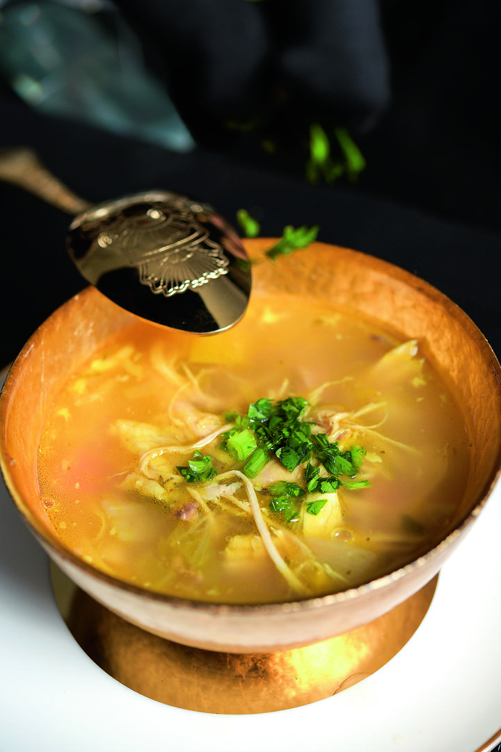 U zasoljenu vodu stavite kuhati na 2 sata pivca, kokoš i goveđe kosti. Ostavite da se ohladi i zatim skinite svo meso sa kostiju i vratite u vodu u kojoj se kuhalo. Na masnoći od kože domaćeg pivca dinstajte nasjeckani poriluk, česnjak i kapulu. Dodajte nasjeckanu mrkvu, celer, pastrnjak i grašak. Sve ubacite u vodu s kokošjim mesom i kuhajte još 1 sat. Dodajte soli, papra, kurkume. Prije posluživanja dodajte nasjeckani svježi peršin.