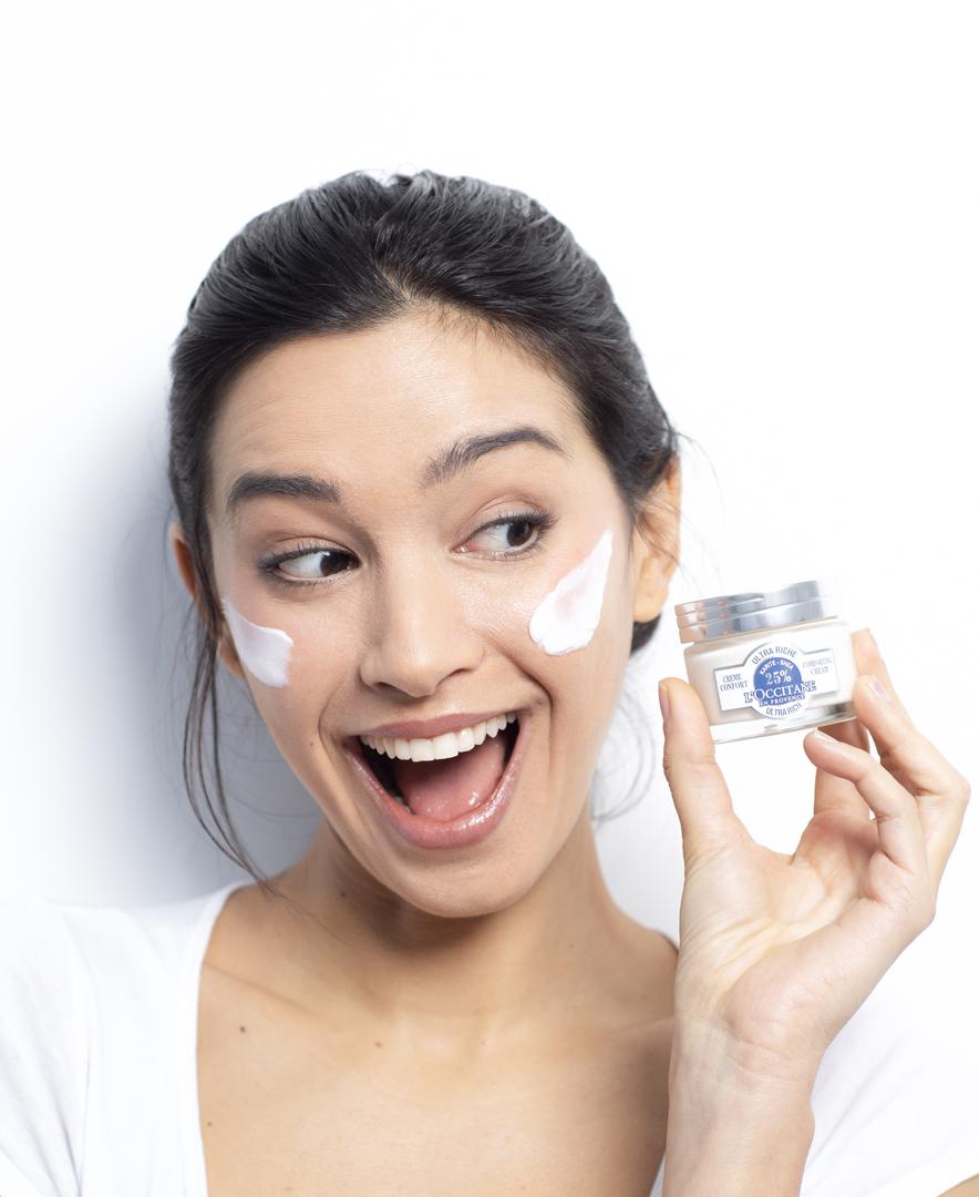 I vaše lice je izloženo hladnim, zimskim uvjetima... Upravo zato L’OCCITANE nudi dvije kreme za lice s karite maslacem. Karite ultranježna krema za lice s 5 % karite maslaca može se koristiti na dva načina: kao krema (naravno), ali i kao maska, ako je ostavite na licu 5 minuta.