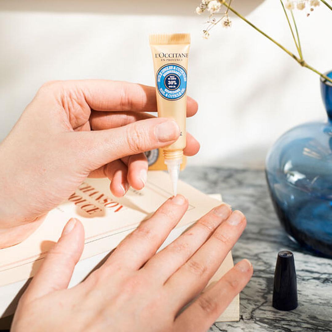 L’OCCITANE uvijek preporučuje ovaj provjereni ritual koji vam omogućava da odvojite vrijeme za sebe i zaista njegujete svoje ruke. U siječnju 2019. L’OCCITANE će lansirati poboljšani prvi korak ovog njegujućeg rituala. Karite hranjivo ulje za nokte i zanoktice od sada će biti u boji šampanjca. To je najprikladnije za proizvod koji treba slaviti! Uvijek možete računati na to da će formula ovog ulja ojačati vaše nokte i učiniti ih sjajnima! 30 % karite ulja i bademovo ulje. Recept za sladak užitak i predivnu mekoću!