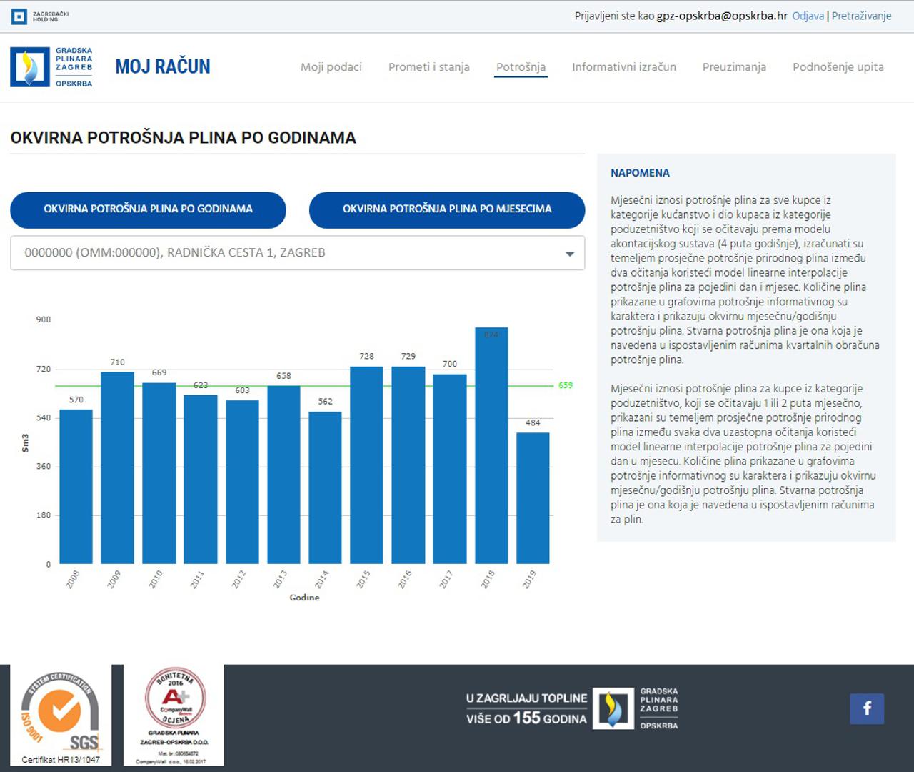 Za bolju kontrolu troškova tu je i aplikacija „Moj račun“ uz pomoć koje možete puno jednostavnije kontrolirati svoje troškove za plin, a možete je koristiti preko Internet preglednika i mobilnih aplikacija za iOS i Android operativne sustave. Zanima vas kako će vam ta aplikacija pomoći u vašoj svakodnevici? Olakšat će vam plaćanje režija jer ćete sve parametre konačno vi imati pod kontrolom, dovoljno je da se registrirate i imat ćete potpuni pregled zaduženja i uplata, a moći ćete u bilo kojem trenutku dojaviti i stanje brojila. MOJ RAČUN aplikacija nudi i mogućnost grafičkog prikaza mjesečne, kao i godišnje potrošnje plina. Kad god poželite možete napraviti informativni izračun troškova potrošnje plina za bilo koji vremenski period. Sve ispostavljene račune možete preuzeti u PDF formatu, a u web verziji aplikacije možete zatražiti prelazak na našu novu slugu „Mjesečni račun“ u kojoj možete račune dobivati na mjesečnoj bazi prema stanju plinomjera koje nam dojavljujete.