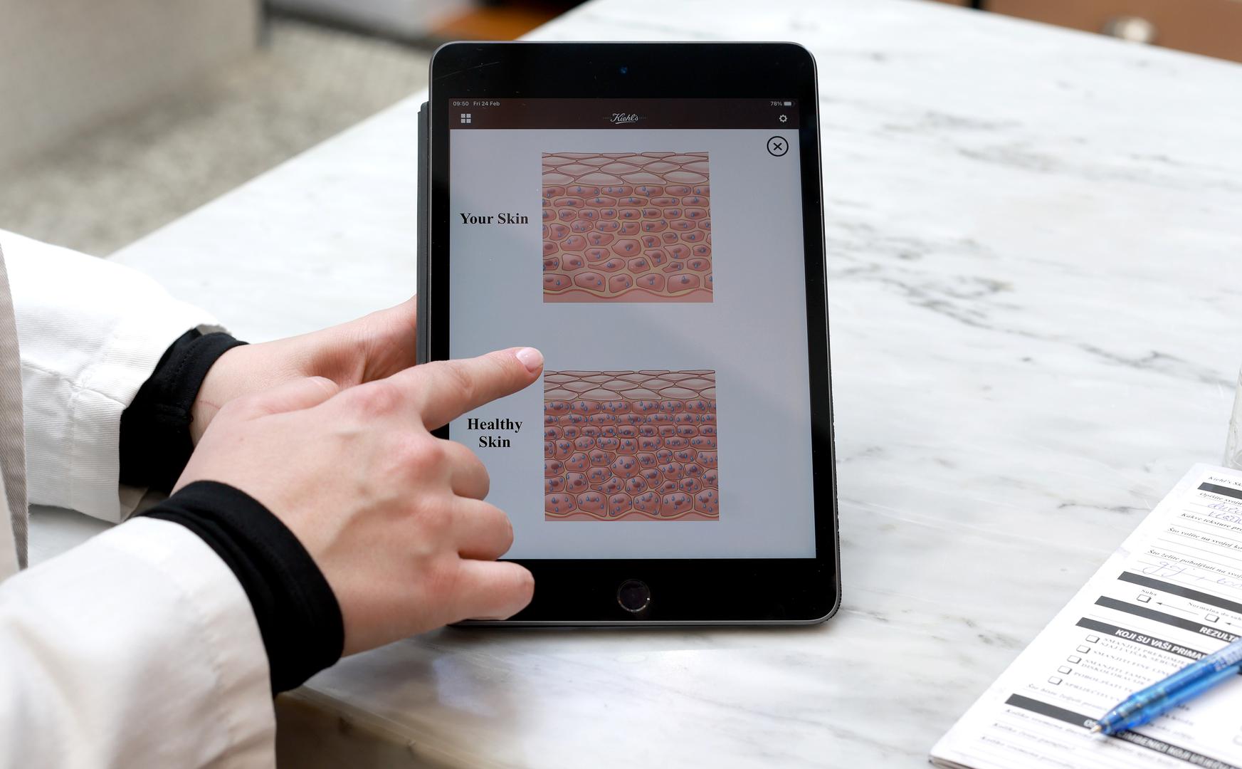 Detaljna analiza kože provodi se uz pomoć dva posebna uređaja te se temeljem dobivenih rezultata i popunjavanja upitnika o navikama kupca pružaju personalizirani savjeti