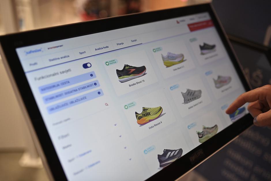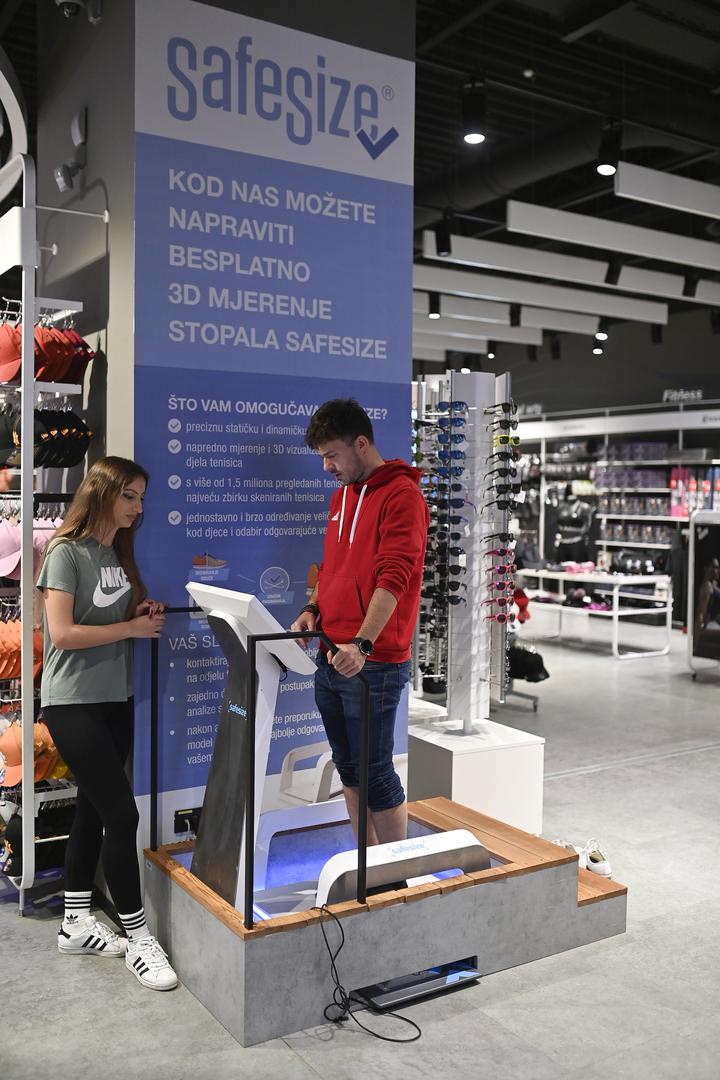 Kada sam stigao, ljubazno osoblje me uputilo do SafeSize skenera, uređaja veličine trake za trčanje koji stoji otprilike na sredini prodavaonice. Usluga koristi naprednu tehnologiju 3D skeniranja i umjetne inteligencije kako bi detaljno analizirala oblik i strukturu stopala. Proces je bio jednostavan, nakon upisivanja par osnovnih podataka, stao sam na platformu u čarapama pažljivo sakrivši rupu na prstima da prodavačica ne primijeti, a skener je u par sekundi zabilježio točne dimenzije mojih stopala. Nakon toga, dobio sam detaljan izvještaj koji je uključivao ne samo veličinu, već i širinu, visinu luka i sve druge bitne parametre na mail. Nakon toga je slijedilo hodanje po nekakvoj podlozi sa senzorima koja mi je na ekranu pokazala kako gazim i slijedio je odabir sporta kako bi Safesize predložio model tenisica koje mi odgovaraju.