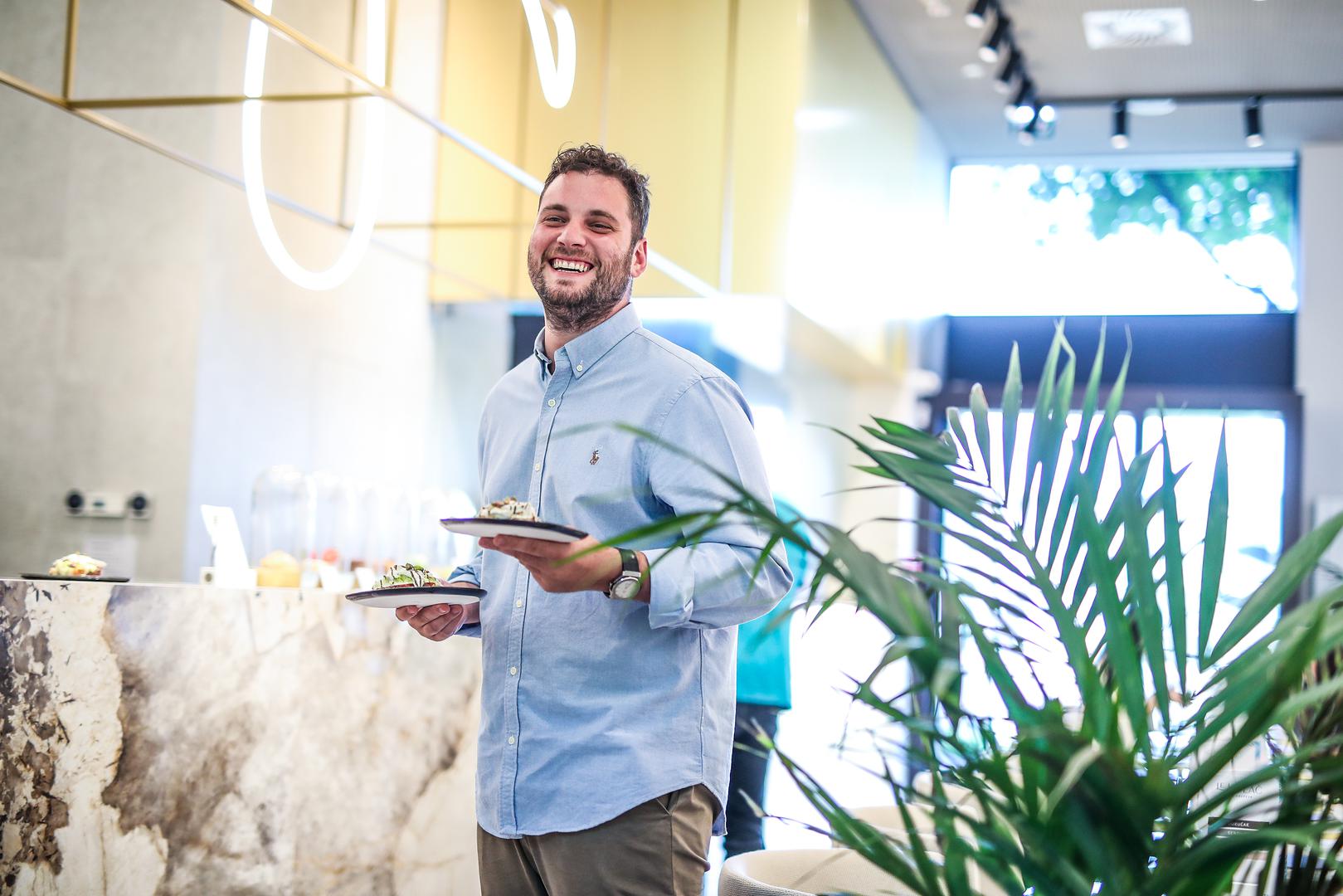 Sendvič s pečenim lososom, šparogama i kremastom kozjom skutom, slatka iznenađenja nazvana “ice donut”, hladni lava cake te osvježavajući kokteli samo su dio ponude u kojoj će se ovog ljeta guštati na skrovitoj terasi zagrebačkog bistroa Le kolač u Parku kneževa u Branimirovoj 41. Ručno rađene kolače, kao i ostale gastro delicije ondje potpisuje mladi chef Robert Hromalić koji je zanat izučio u prestižnoj francuskoj kulinarskoj školi u Parizu, “Ferrandi”, za što je čak dignuo i kredit, jer mu, kaže, nikada nije bio problem uložiti u sebe.