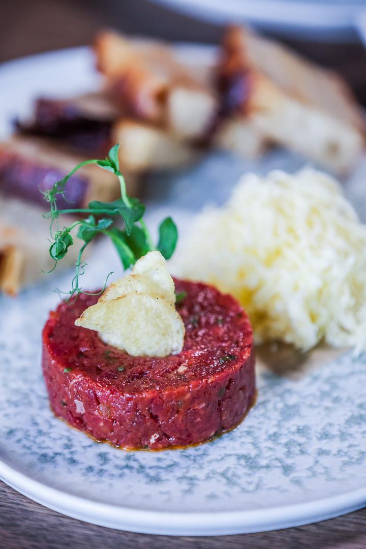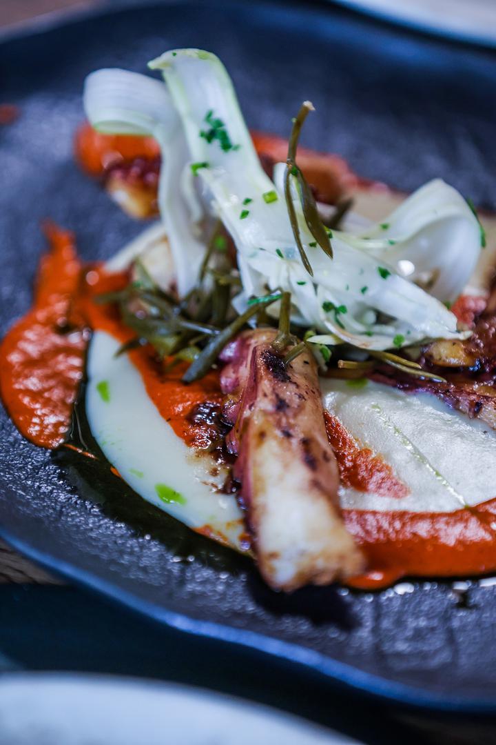 Naravno, kada je o restoranima riječ, osoblje, prostor i inventar neka su vrsta tehničkih disciplina u odnosu na meni. A on je prilično impresivan. Kušali smo tartarski biftek, jelo koje se uvriježilo u domaćim restoranima. I nama omiljeno jelo ovdje se poslužuje s dimljenim maslacem i domaćom focacciom od kiselog tijesta. U više varijanti kao što je, recimo, ona s cvijetom soli ili sirom grana padano te špekom su pogačice koje se nude kao kućni zalogaj uz svako jelo kojem mogu pristajati. Sam biftek odličan je, kompaktan, no lako jestiv, dimljeni maslac je intrigantan twist. Kušali smo i hobotnicu na kremi od konfitiranog češnjaka, s umakom od paprike i inćuna te hobotnice, džemom od komorača, hrskavcem od sipina crnila. Za sva jela koja smo kušali može se reći kako izgledaju izvrsno, no ovako priređena “hoba” zaista je slika te brojni ljubitelji ove morske delicije imaju dodatni razlog da dođu ovdje.
