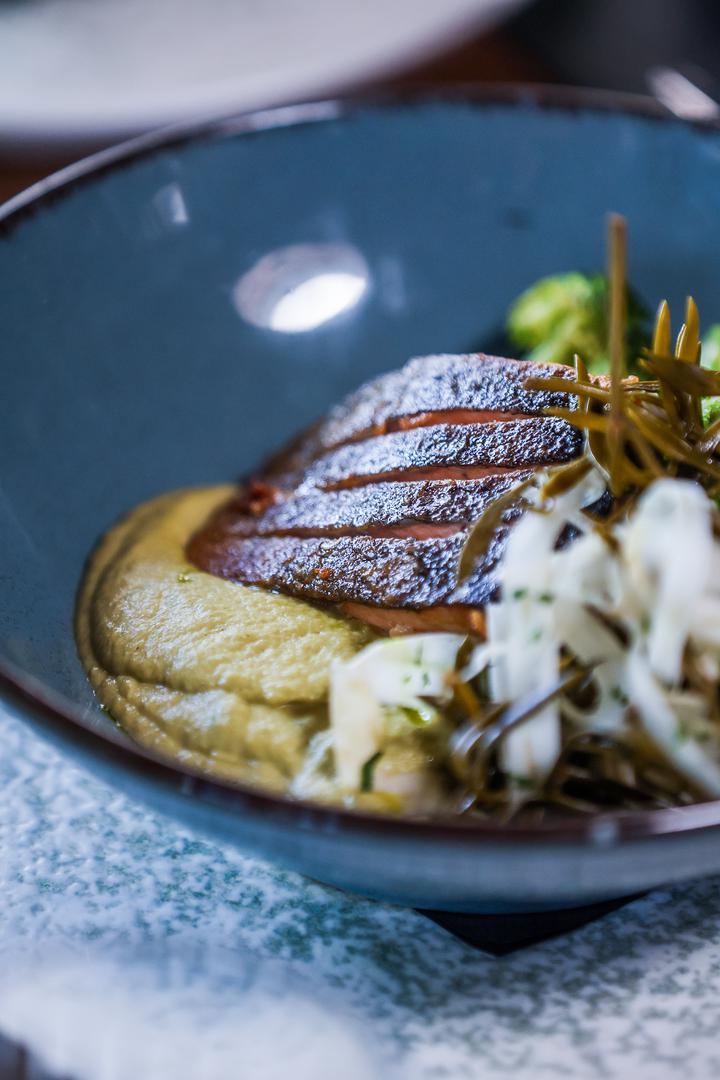 Jedno od jela koje bismo označili malom senzacijom bio je losos sa sotiranim povrćem i citrusima, salatom od komorača i motra te pireom od kopra prelivenim uljem od te biljke. Bilo je zanimljivih pokušaja plasiranja lososa u varijantama osnovnih jela, čini nam