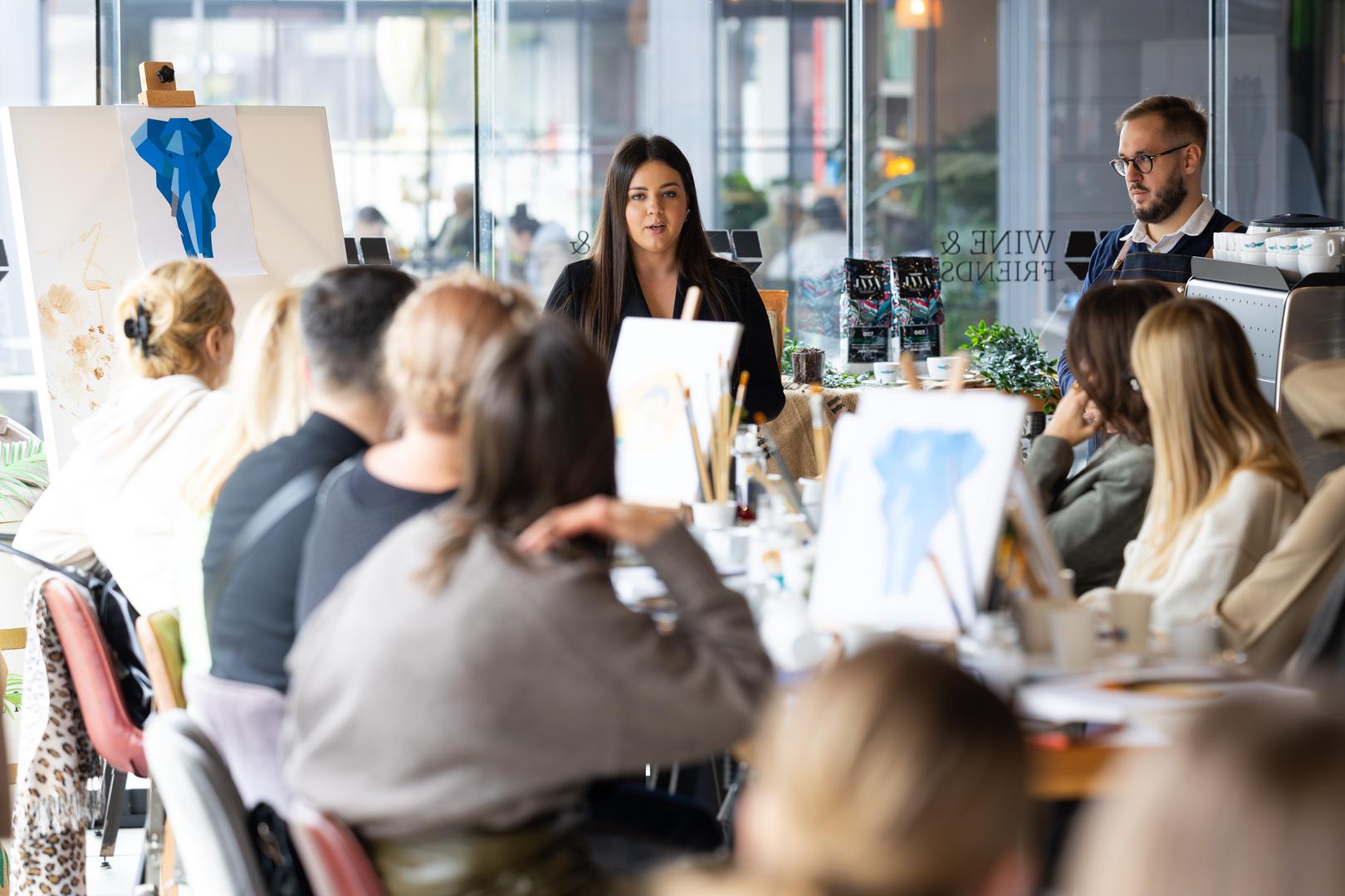 Predstavljanje brenda u Wine and Friends baru u Zagrebu upotpunjeno je intimnom slikarskom radionicom nadahnutom kavom, pod vodstvom umjetnice i pedagoginje Anite Genc.