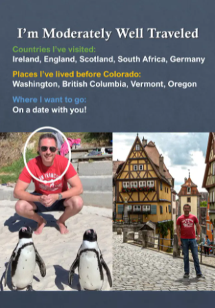 Otkrio je i zemlje kojima je putovao poput Njemačke, Irske, Afrike, Škotske, ali i one u kojima je živio: Vermont, Oregon, Washington... Pod mjesta na koja želi otići napisao je "na spoj s tobom", i time privukao najviše pažnje.