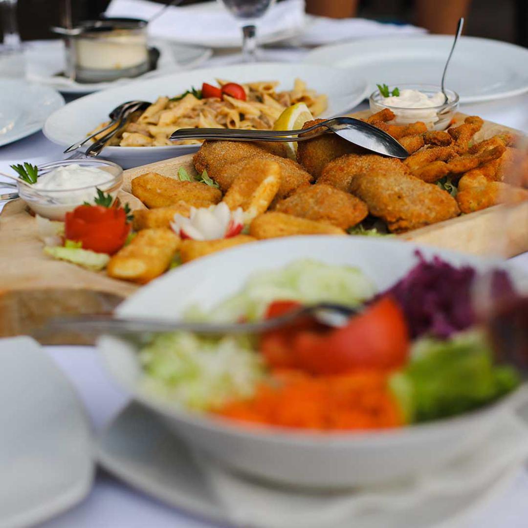 Pastrva na mlinarski, gulaš od vepra, jelena ili medvjeda, jelenji odrezak u umaku od brusnica s kroketima ili veprov odrezak u umaku od gljiva i palenta s bučinim uljem, zatim bržolica od jelena ili medvjeda ili jelenji ossobuco, jela su koja možete odabrati s bogatog menija, a na njemu su i posebna jela za djecu. Odlična su i jela s ognjišta, poput t-bon steaka, odreska Fiorentina, odležanog jelenjeg ramsteka sa žara ili veprića pečenog ispod peke.