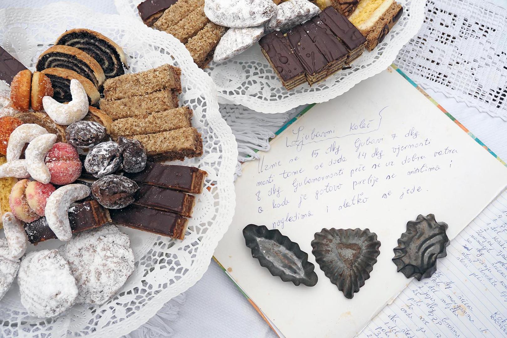 "Svaka šakica se pripremi i organizira kad krene s pečenjem kolača kako bi sve stigla. Sitni se kolači počinju prvi peći jer oni mogu stajati duže. Kako se blagdani približavaju počinju se peći Žarbo šnite, Limun šnite, Olga, Čupava Kata i na samom kraju a to mora biti gotovo makar do Velike subote Mađarica ,Bijela pita ,Medena pita... Tako se vrlo brzo popuni tanjur s različitim vrstama kolača. Tako je bilo nekad, tako je i danas. Kreneš s pečenjem tri vrste, a onda ostalo smjese, imam vremena, pa ovaj voli ovo, onaj ono i eto već ste na 15 vrsta kolača", kažu jednoglasno Blaženka i Marija dodajući kako za blagdane, ali i nedjelje u Šokačkom kraju mora biti kolača na stolu. Naravno oni se i dijele, gostima koji dođu u kuću, susjedima s kojima se kolači razmjenjuju, pakiraju se paketići i nose onima koji nemaju. "Uglavnom, ništa ne propadne, sve se pojede", dodaju naše domaćice. Među kolačima koje su pripremile ističe se jedan neuobičajeni, a on ima i svoju priču.