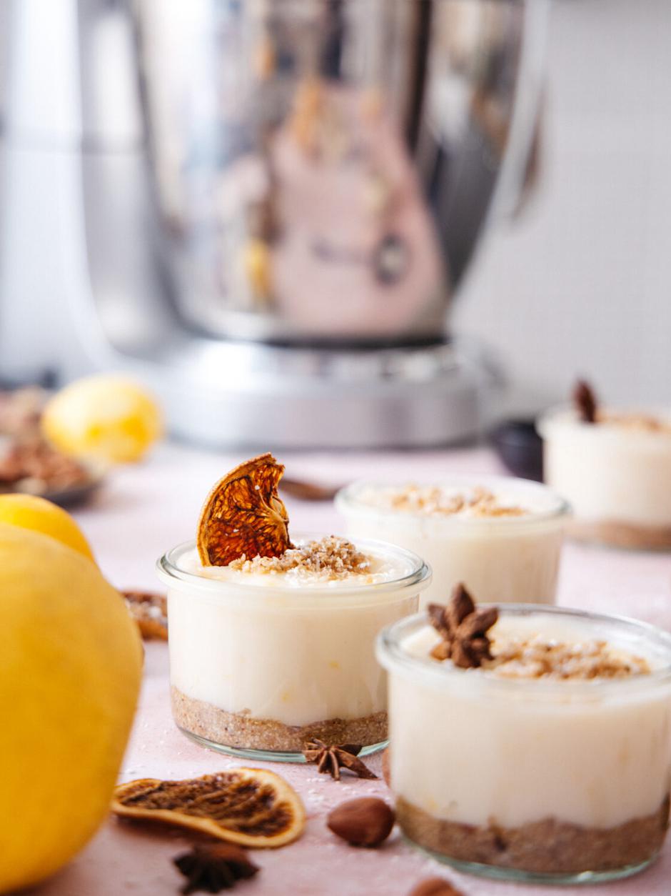 Sve sastojke za bazu stavite u multipraktik i miksajte dok se svi sastojci ne spoje. Baza će na prvu biti mrvičasta, ali utiskivanjem u čaše i stajanjem u hladnjaku će se stisnuti. Žlicom je utisnite na dno zdjelice (čaše) i stavite u hladnjak dok pripremate kremu.