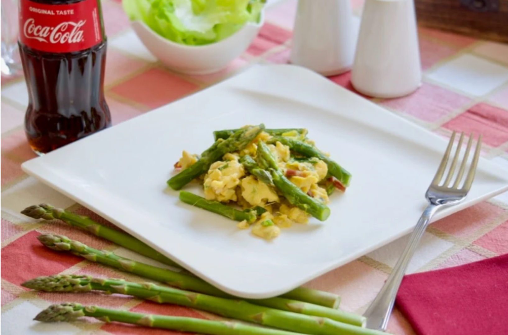 Sastojci: - stručak šparoga - 2-3 mlada luka - 100 g suhe slanine - 6-7 jaja - sol, papar