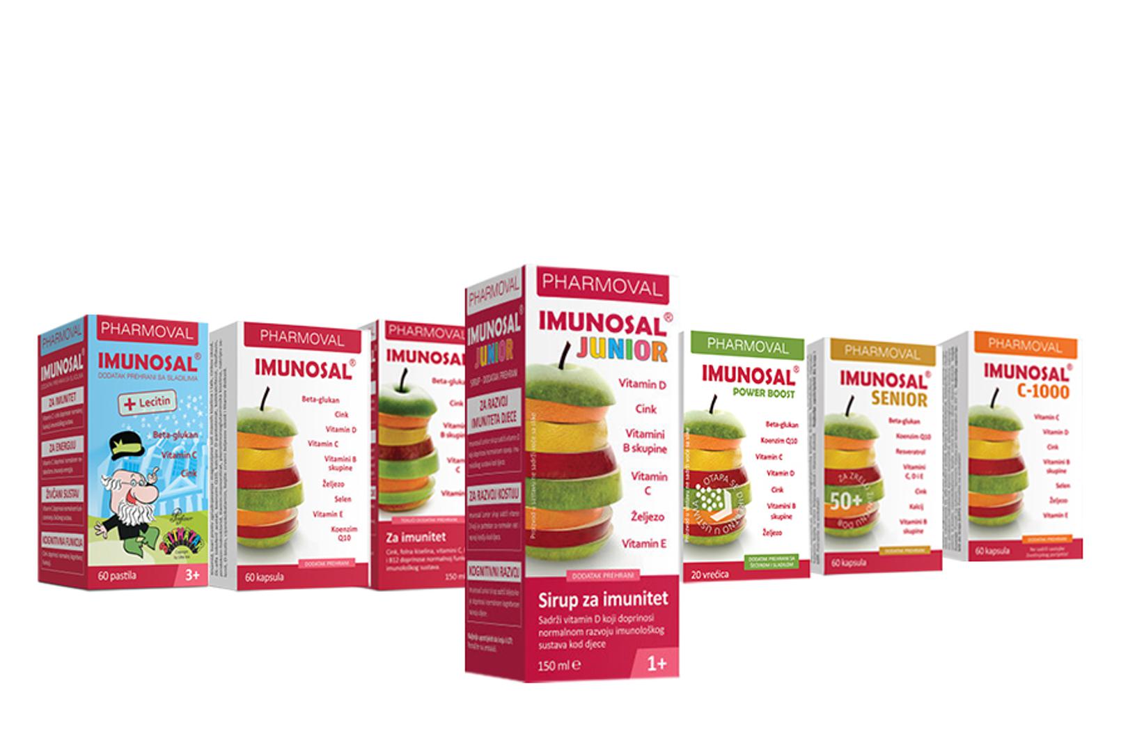Imunosal® dodaci prehrani sadrže jedinstvene kombinacije sastojaka koji doprinose funkciji imunosnog sustava, metabolizmu stvaranja energije te smanjenju umora i iscrpljenosti.