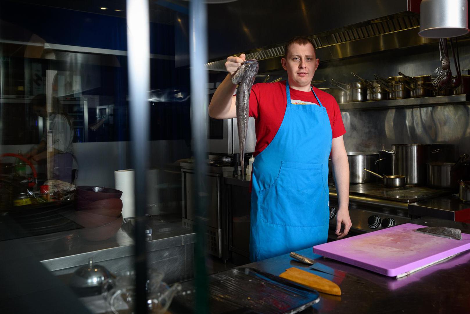 Oslić ima vrlo delikatno i mekano meso pa je vjerojatno još teže raditi s njim? – Oslić je malo drugačija riba, kost mu ide u slovo 'T' pa se tijekom filetiranja mora zarezati gore kod kralježnice, onda laganim rezom ići do prvog dijela kosti i kad dođete do mjesta gdje kost ide u slovo 'T' samo treba lagano zarezivati uz tu kost, zatim spustiti nož prema potrbušini i oslić je filetiran – objašnjava nam chef dok nožem demonstrira ono što govori.