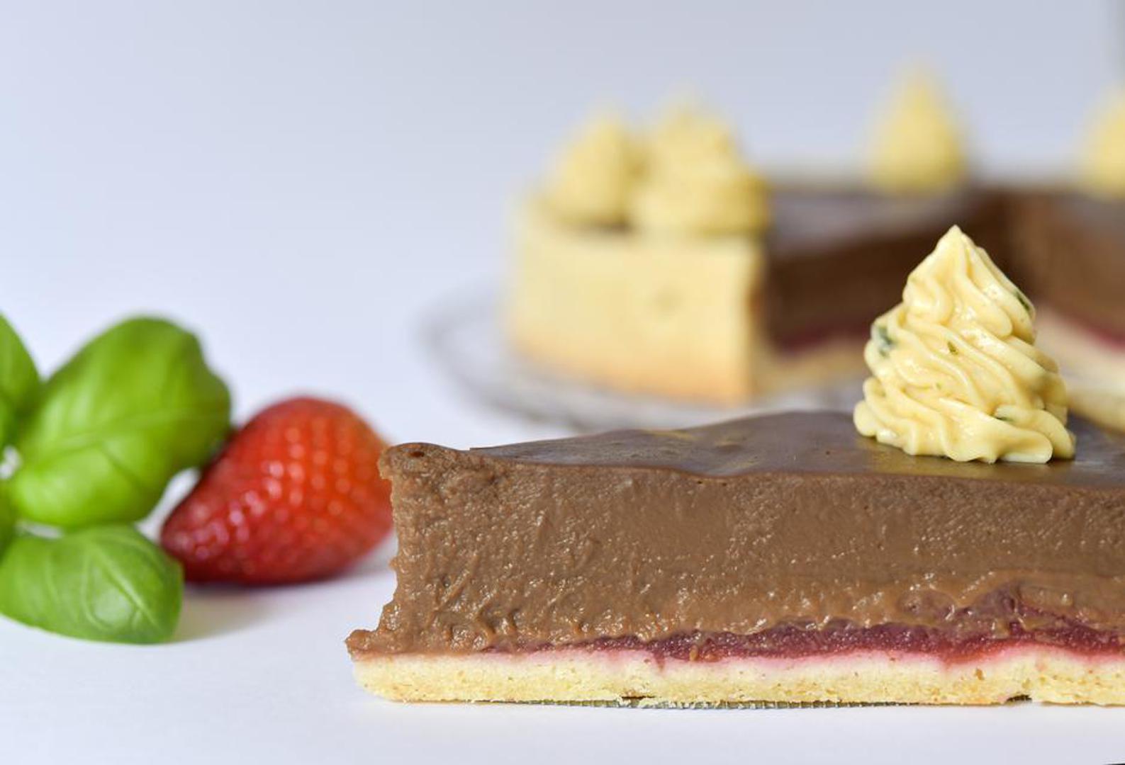 Tart od čokolade, jagoda i bosiljka