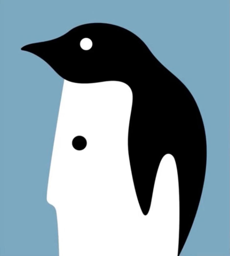 Kad se dovoljno dugo promatra, fotografija prikazuje i lice bijelog čovjeka s crnom zalizanom kosom i crno-bijelog pingvina s plavom pozadinom. Ovisno o tome kako osoba tumači sliku, može vidjeti čovjeka ili pingvina. Yilin tvrdi da ono što osoba prvo vidi – čovjeka ili pingvina – otkriva njezinu osobnost.
