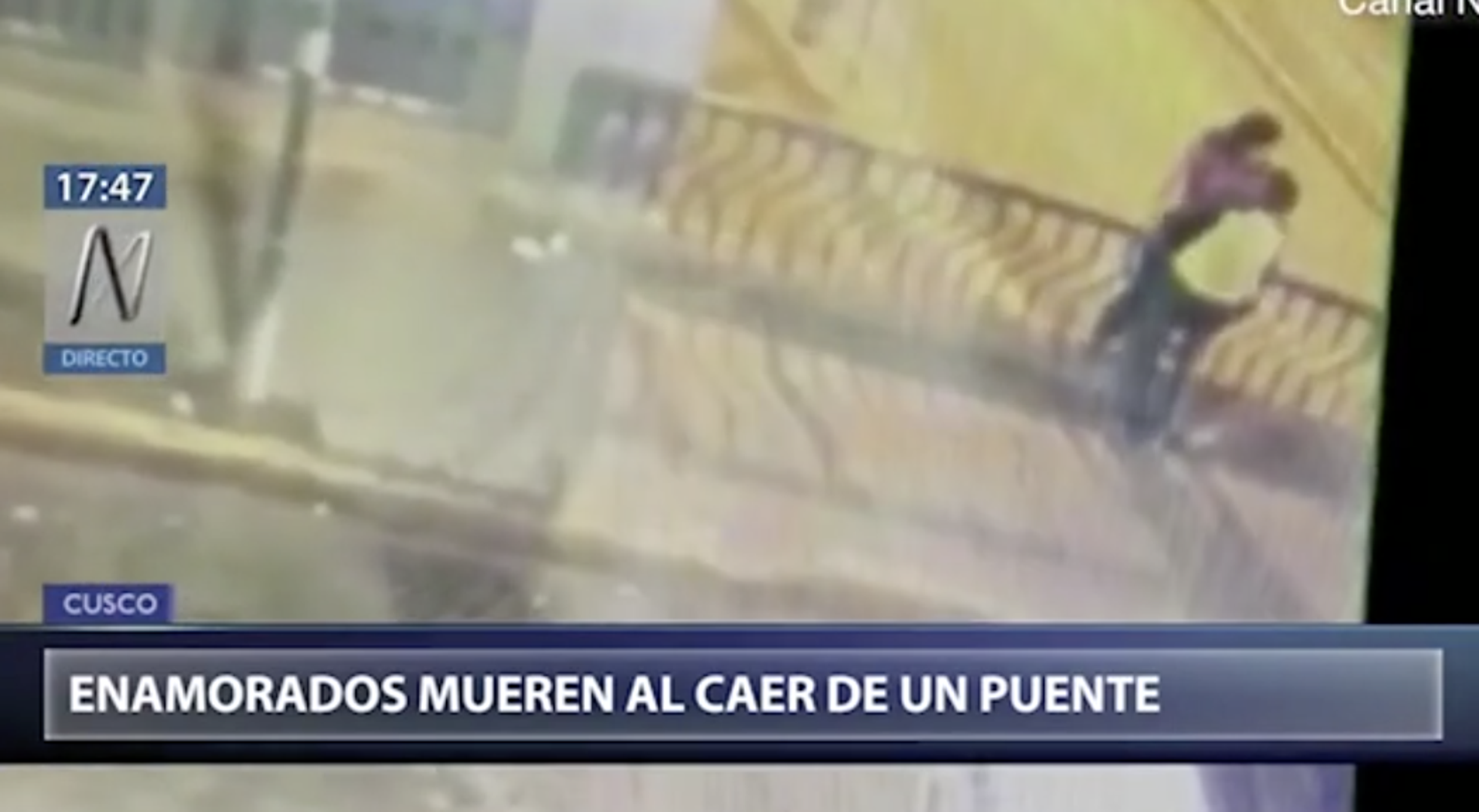Maybeth Espinoz (34) i Hector Vidal (36) vraćali su se kući iz noćnog kluba u gradu Cusco u Peruu kada su zastali na mostu kako bi se poljubili, a izgubili su ravnotežu i završili na cesti, piše Metro
