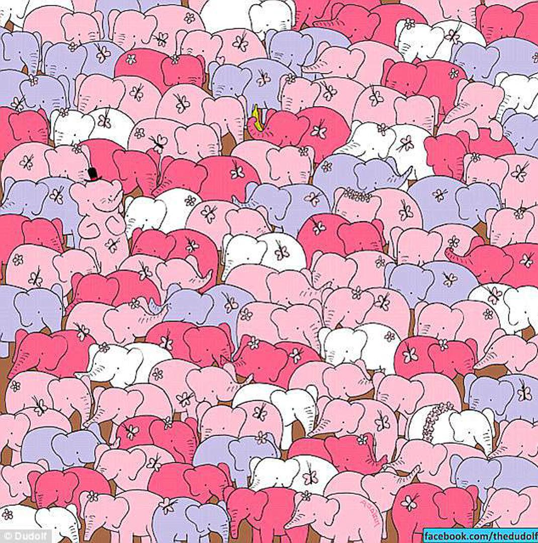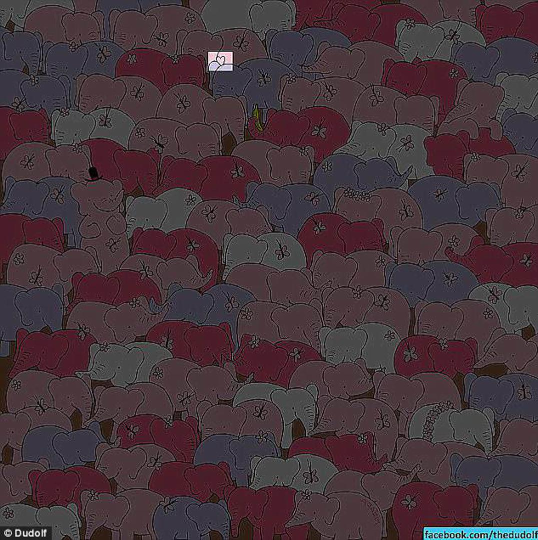 Leptiri, cvijeće i slonovi različitih boja nalaze se na istoj slici, a među njima je potrebno pronaći jedno srce. Iako izgleda vrlo lagano, neki ljudi su imali problema s pronalaskom ovog oblika.