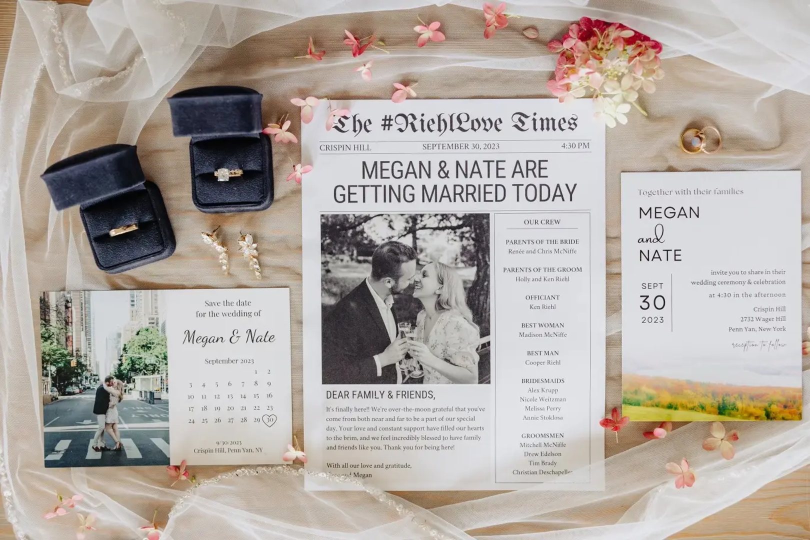 Mladenka s Upper West Sidea, Megan Riehl, kaže da je obavljanje zadataka za vjenčanje zajedno s njezinim sada mužem, Nateom, učinilo organizaciju njihove proslave vrijedne manje od 80.000 dolara čarobnom - posebno s ChatGPT-ovim generatorom slika, DALL-E. "Utipkali smo našu točnu viziju u sustav", rekao je Riehl (28). "Izradio je prekrasna umjetnička djela za naše pozivnice." Šarena ilustracija prikazivala je krajolik uz jezero mjesta događaja, Crispin Hill u Rochesteru, New York, gdje je par izmijenio zavjete u rujnu 2023. "Izgledalo je kao da ju je naslikao umjetnik."