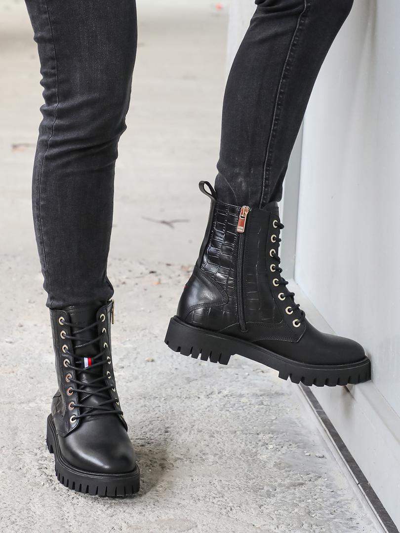 Vojničke čizme s krokodilskim printom obuća su koju nije teško kombinirati s različitim odjevnim stilovima, a također se izvrsno podudaraju sa svim vrstama uzoraka. Šik kombinacija mogu biti crne ili crvene vojničke gležnjače s krokodilskim uzorkom, bijela košulja i karirana jakna. Istaknuti ovogodišnji trend čine i  bijele „kroko“ vojničke gležnjače, koje su već osvojile srca modnih entuzijastica.