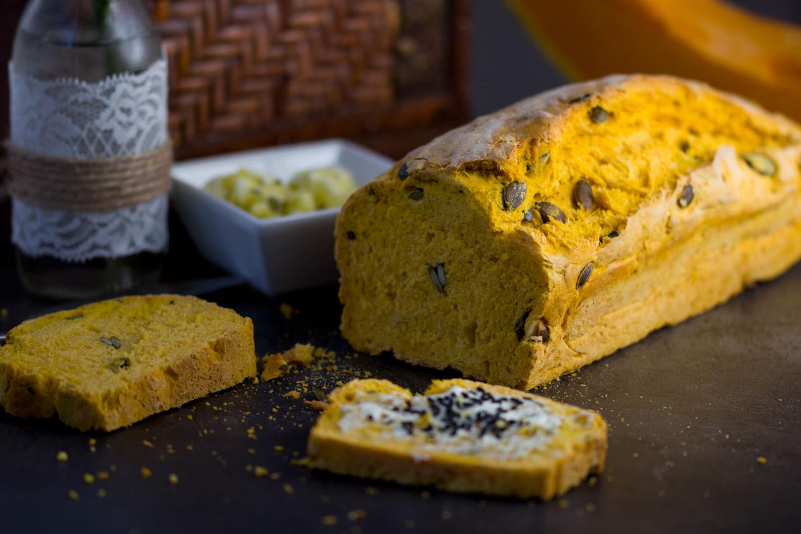 Bundevu narežite na komade, pa je pecite u pećnici dok se ne smekša. Zatim “meso” bundeve ispasirajte vilicom i ostavite da se prohladi. U posudu s mlakom vodom dodajte žlicu šećera, kvasac i promiješajte. U posudu miksera stavite brašno, pripremljeni kvasac, ulje, sol, sjemenke, pire od bundeve i sve dobro promiješajte. Tijesto stavite u kalup 12 x 30 cm, pa ga ostavite barem pola sata da naraste. Zatim ga premažite s nekoliko žlica ulja i pecite 40-50 minuta u pećnici zagrijanoj na 190 °C. Pečeni kruh stavite na žičanu rešetku, prekrijete ga pamučnom krpom i pustite da malo “odmori”. Kad se mrvicu prohladi vrijeme je za posluživanje!