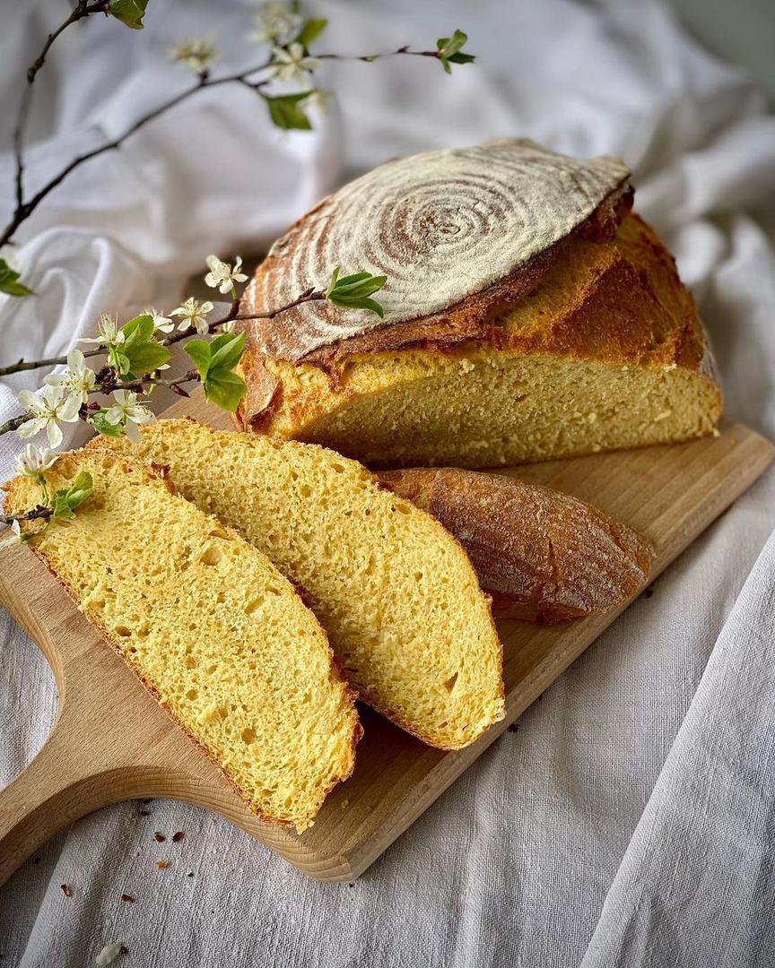 Kukuruzno brašno pofurite/zalijte kipućom vodom i dobro promiješajte da se podjednako upije. Poklopite zdjelu i lagano ohladite. Dodajte sve ostale sastojke i umijesite tijesto, te stavite da se digne (jednom je dovoljno, a može i dvaput). Da ubrzate postupak, možete ubaciti u pećnicu na 50 stupnjeva, tada je potrebno maksimalno 10-15 minuta. Svako brašno različito upija tekućinu, čak i od istog proizvođača; zato brašno dodajte postepeno ili po potrebi dodajte još malo vode/brašna. Kruh oblikujte, pobrašnite i prebacite u posudu za dizanje. U pećnicu stavite posudu s poklopcem u kojoj će se peći kruh, i pojačajte temperaturu na maksimum. Kad se ugrije, prebacite kruh u posudu (nije potrebno nauljiti posudu niti staviti masni papir), malo zarežite površinu, poklopite i pecite 25 minuta. Zatim maknite poklopac, temperaturu smanjite na 200 stupnjeva i pecite još oko 15 minuta, ovisno o debljini kruha. Izvadite iz posude i premjestite na rešetku kako se ne bi upario s donje strane.