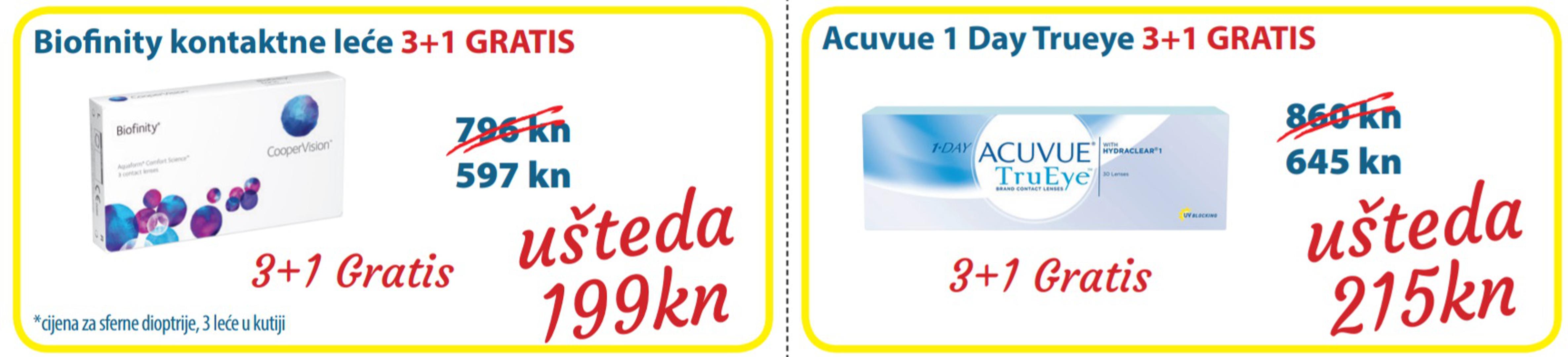 Uštedite 199,00 kn uz Biofinity kupon 3+1 GRATIS ili 215,00 kn Acuvue TruEye kupon 3+1 GRATIS.