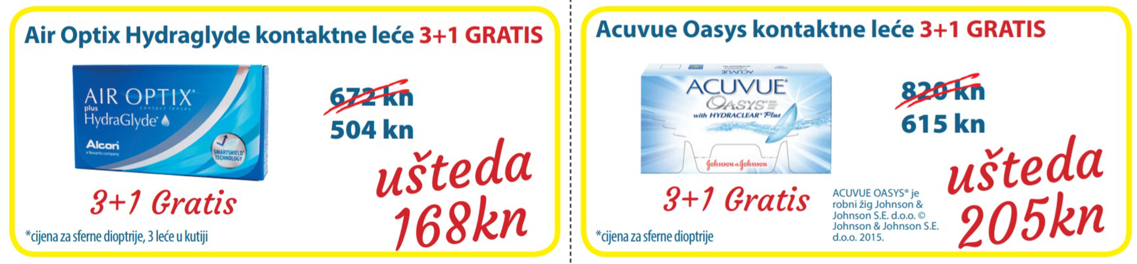 Uštedite 168,00 kn uz Air Optix HydraGlyde kupon 3+1 GRATIS ili 205,00 kn uz Acuvue Oasys kupon 3+1 GRATIS.