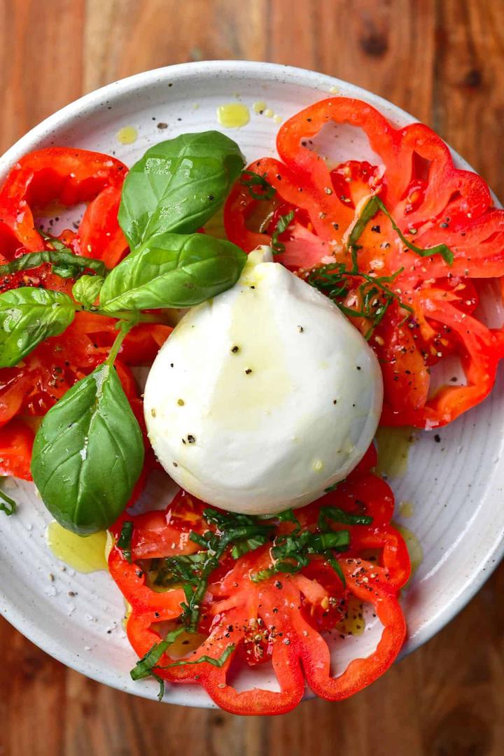 Na primjer, sezona je rajčica pa je najbolje i najlogičnije pozabaviti se jelima od tih ukusnih plodova. Krenimo redom. Zašto da ne napravimo neku verziju salate s burratom, bosiljkom, cherry rajčicama, maslinovim uljem i cvijetom soli? Jednostavno, osvježavajuće, fino i ne zahtijeva puno vremena. Rajčica je skladna gotovo sa svim sirevima - od burrate, mozzarelle, svježeg kozjeg sira nadalje. Slobodno eksperimentirajte, teško da ćete pogriješiti.