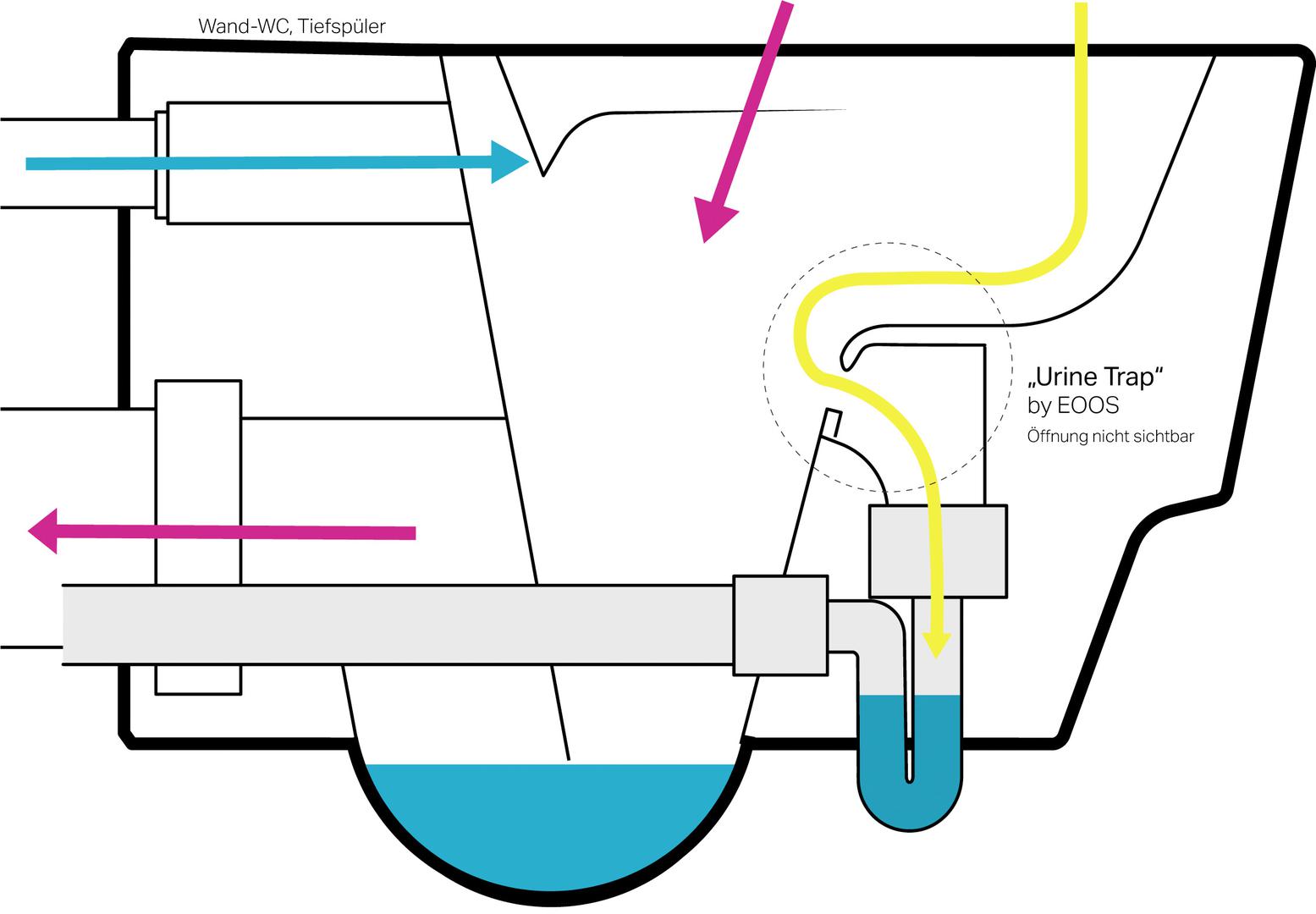 Ovaj inovativan oblik WC školjke koristi “načelo blizine”, gdje se urin odvaja od preostale otpadne vode kroz kanal unutar WC školjke. Različiti tokovi otpada tada se mogu učinkovitije obraditi, omogućujući povrat vrijednih nutrijenata. Ljudski urin je bogat fosforom i dušikom, koji su vrijedni nutrijenti za proizvodnju gnojiva. U mnogim dijelovima svijeta, međutim, te tvari trenutačno završavaju odbačene u prirodi, gdje potiču rast štetnih vodenih biljaka i algi.