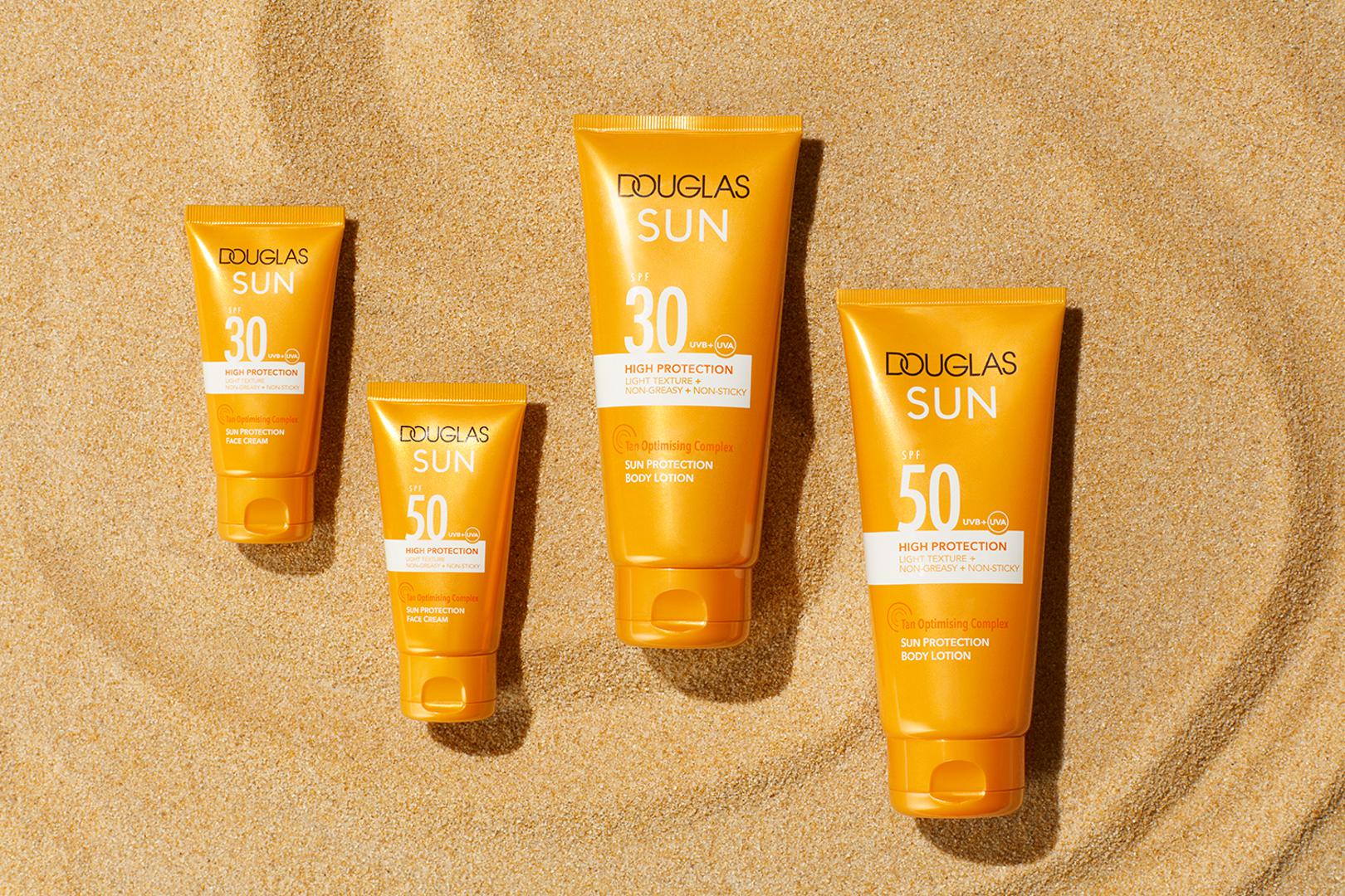 Kako bi dobili, ali i zadržali željeni ten, potrebno je ciljano kupovati preparate za zaštitu od sunca. Iako često gledamo samo visinu SPF-a na ambalažama, ove godine obratite pozornost i na oznake za UVA i UVB zaštitu kako bi kupili proizvode koji osiguravaju cjelokupnu UV zaštitu (Douglas Sun Protection Body Lotion SPF50, 200 ml/115 kn i Douglas Sun Protection Face Cream SPF50, 50 ml, 99,90 kn). Tekstura proizvoda gotovo je jednako važna kao i sastojci, zato birajte lagane i neljepljive proizvode koji neće dodatno opteretiti vašu kožu i zatvoriti pore (Diego Dalla Palma O'Solemio SUNCARE Transparent Spray SPF 50+, 150 ml/225 kn i Sol De Janeiro Bum Bum Sol Oil SPF 30, 90 ml/265 kn). Nikako nemojte zaboraviti dodatno zaštititi ona zapostavljena područja kože poput usana i tanke kože oko očiju, ali i dijelova kože na kojoj se nalaze madeži, ožiljci i tetovaže (Diego Dalla Palma O'Solemio SUNCARE Sun Stick SPF 50+, 8 g/199,00 kn).